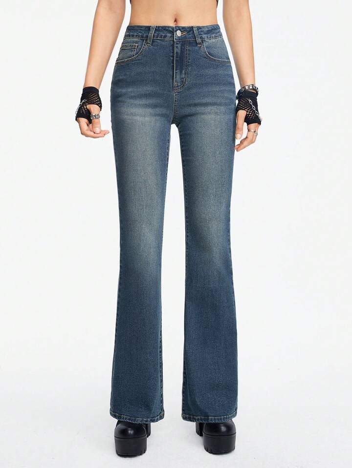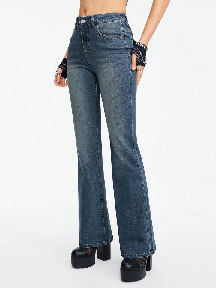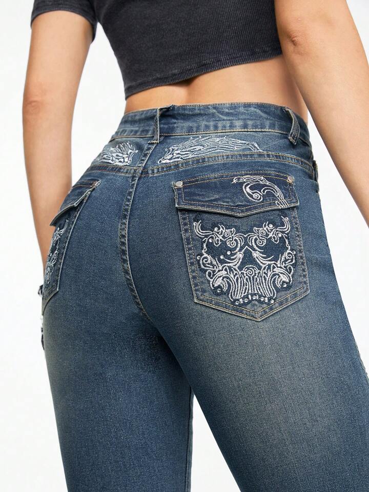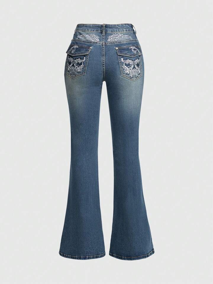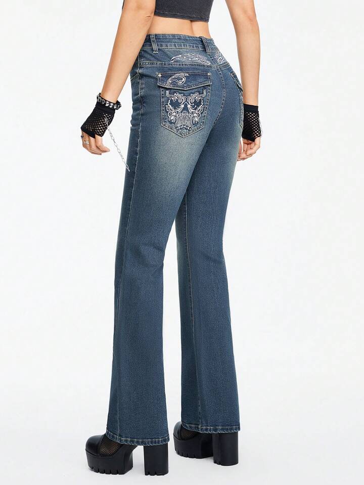 Fairycore Jeans évasés à broderie à ailes et crâne vintage pour femmes