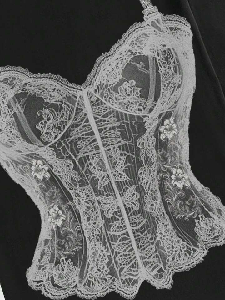 Fairycore Brassière en dentelle Y2K, T-shirt col V graphique pour femme, sexy et sensuel