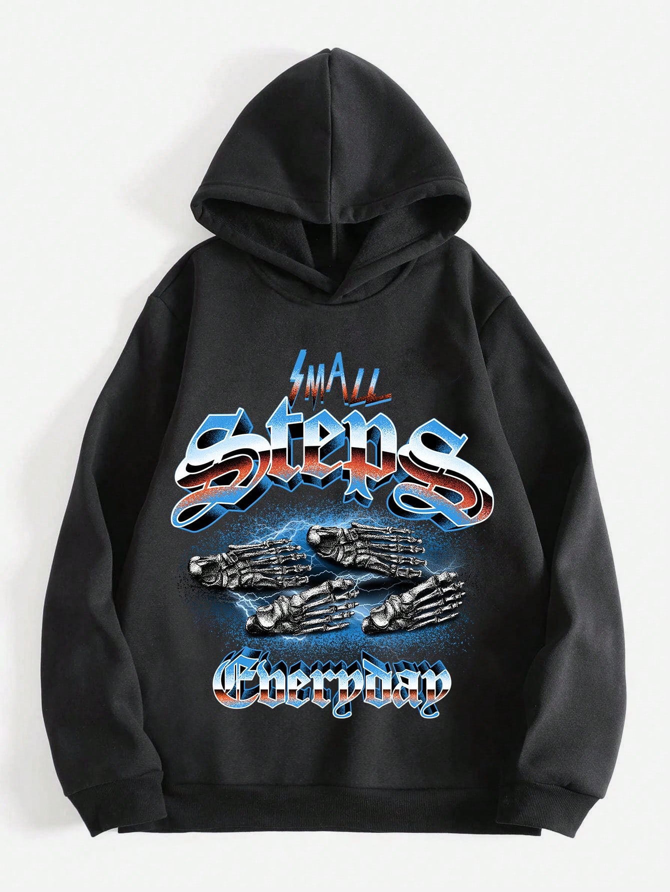 Fakhri Hilmi Homme Sweat-Shirt À Capuche Squelette & À Lettres À Doublure Thermique
