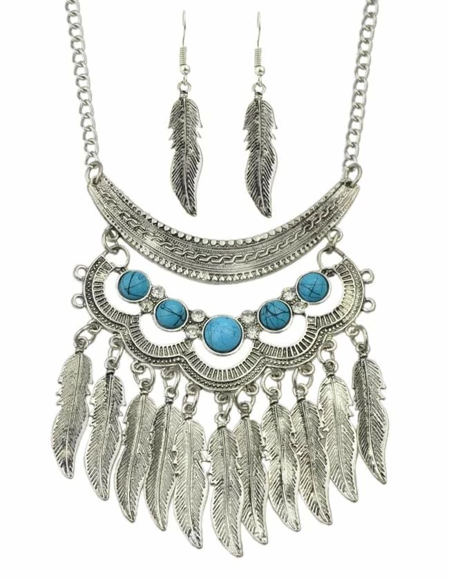 Ensemble de bijou collier et boucle d'oreille indien - argenté