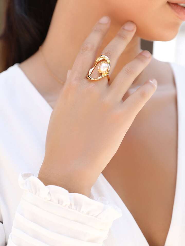 Bague asymétrique décorée de perles de fantaisie