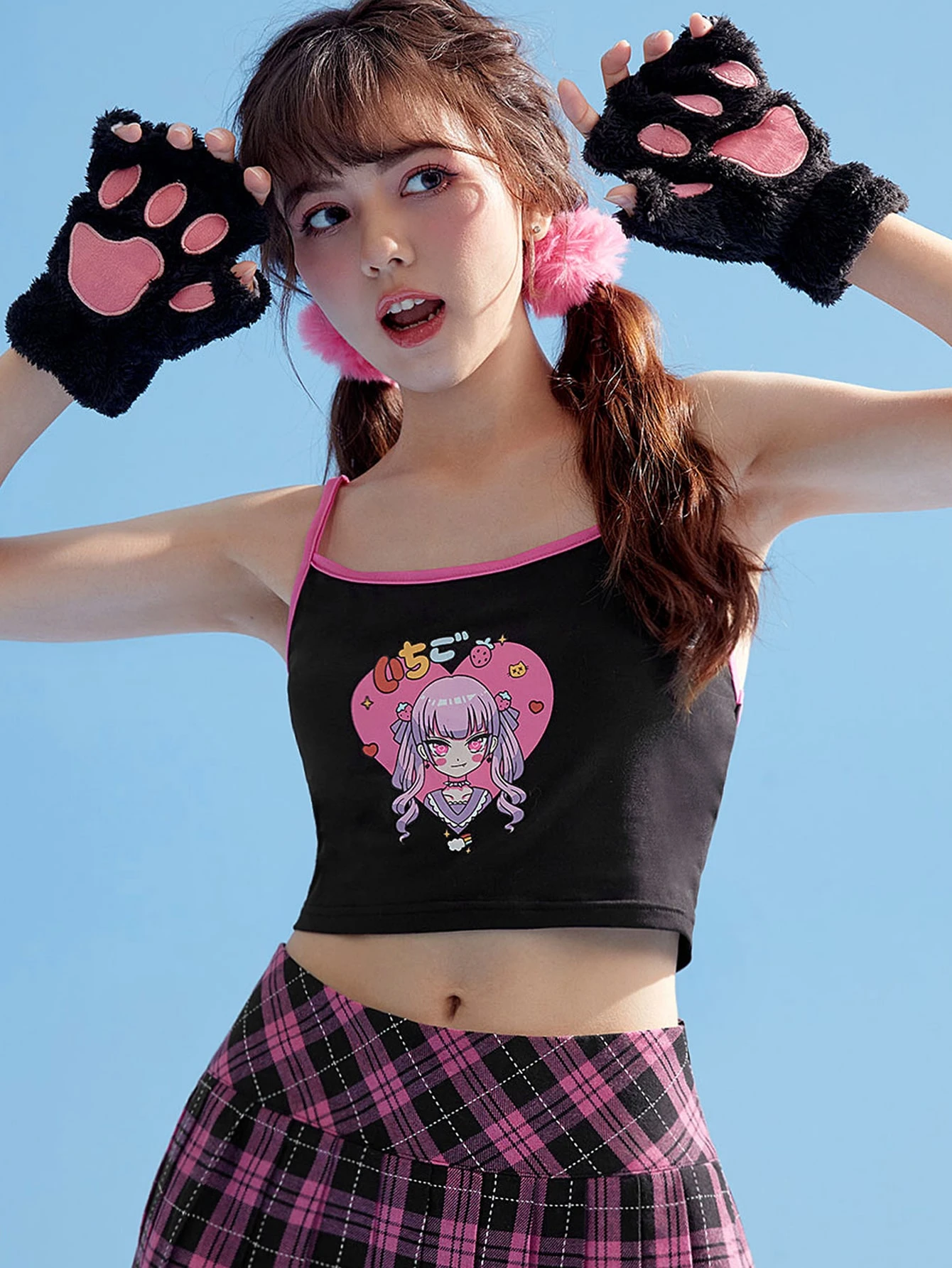 Top à fines brides figure à liseré contrastant
