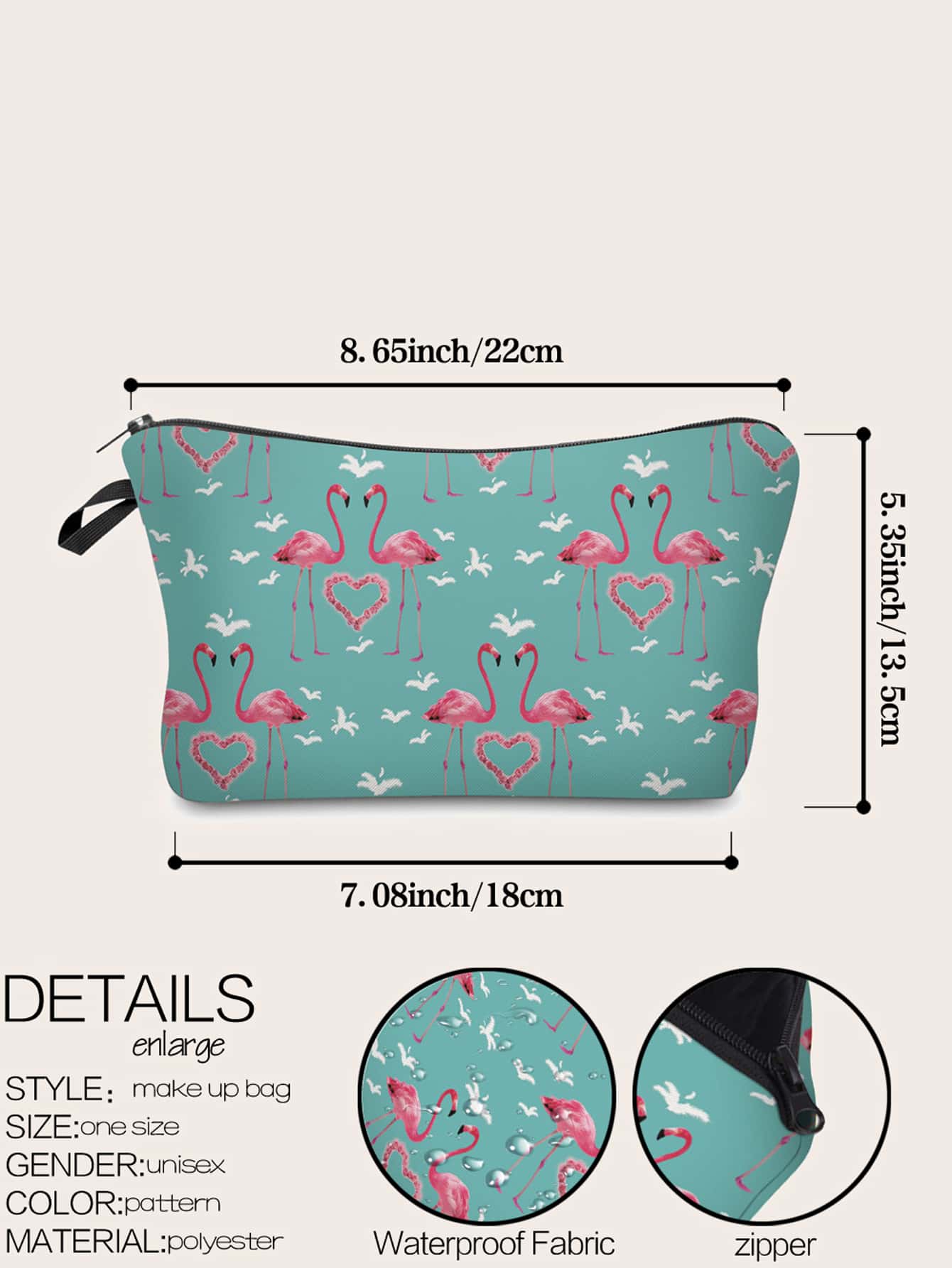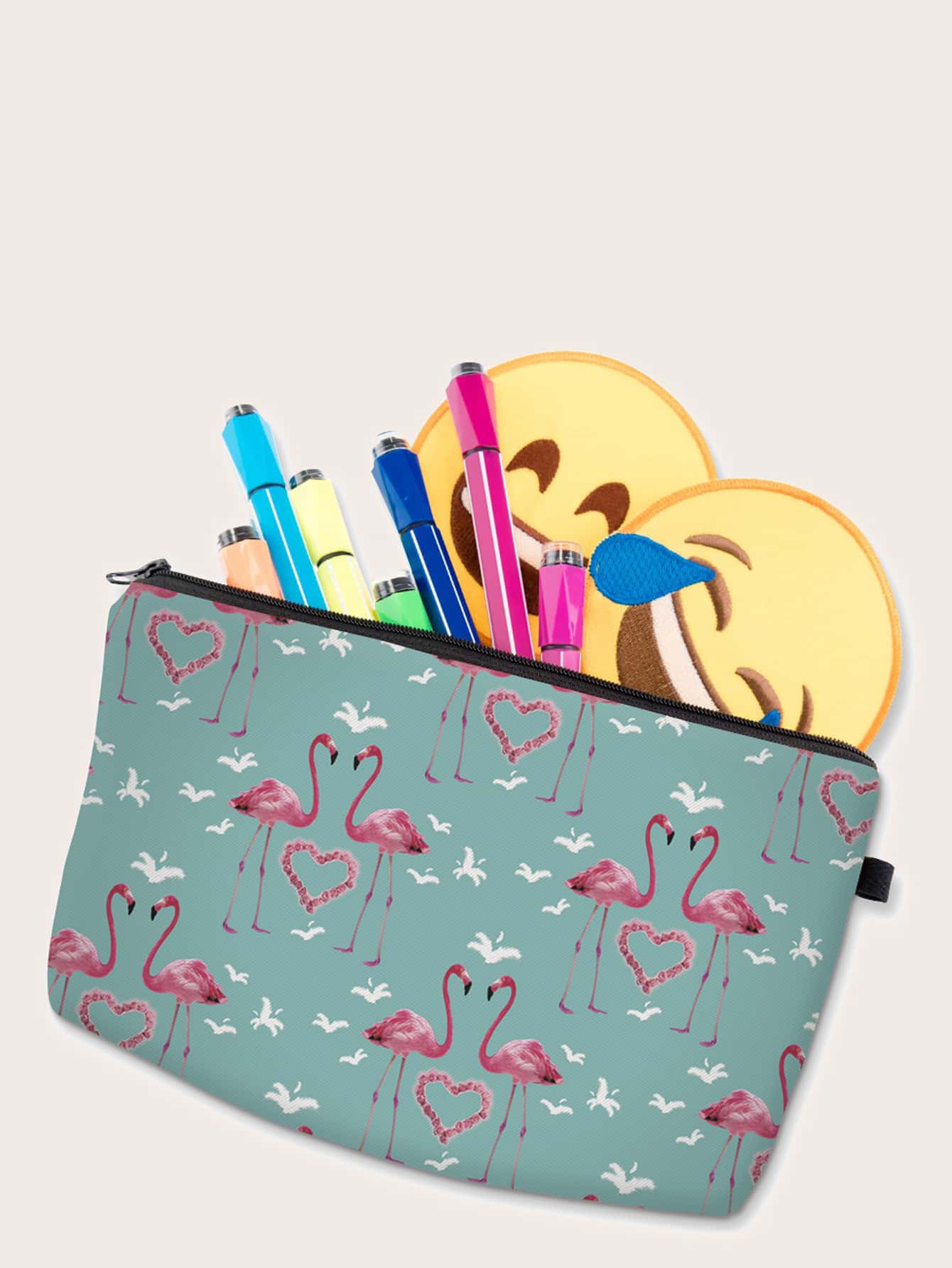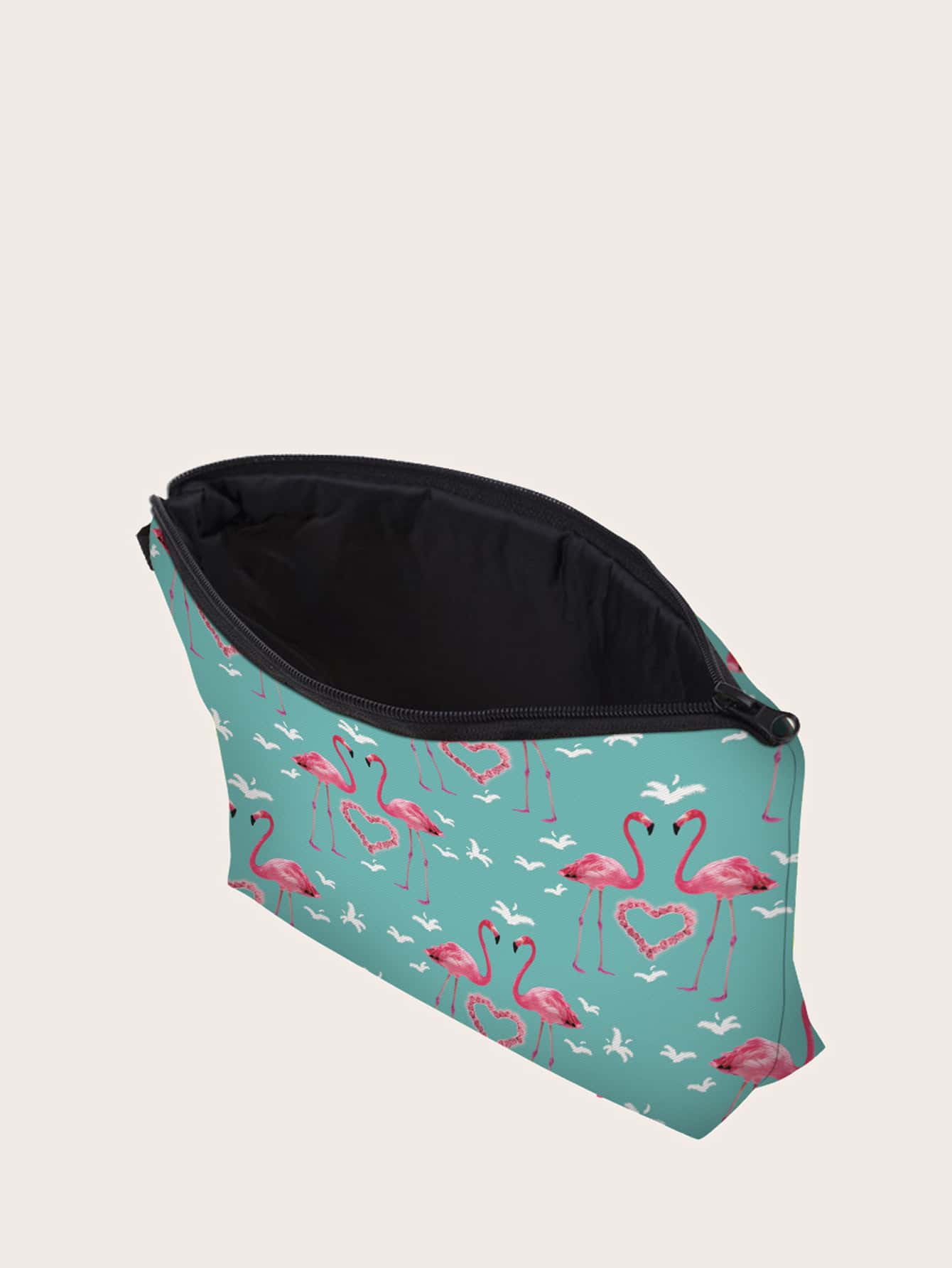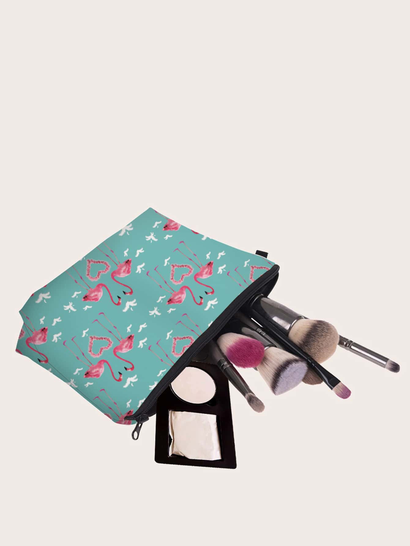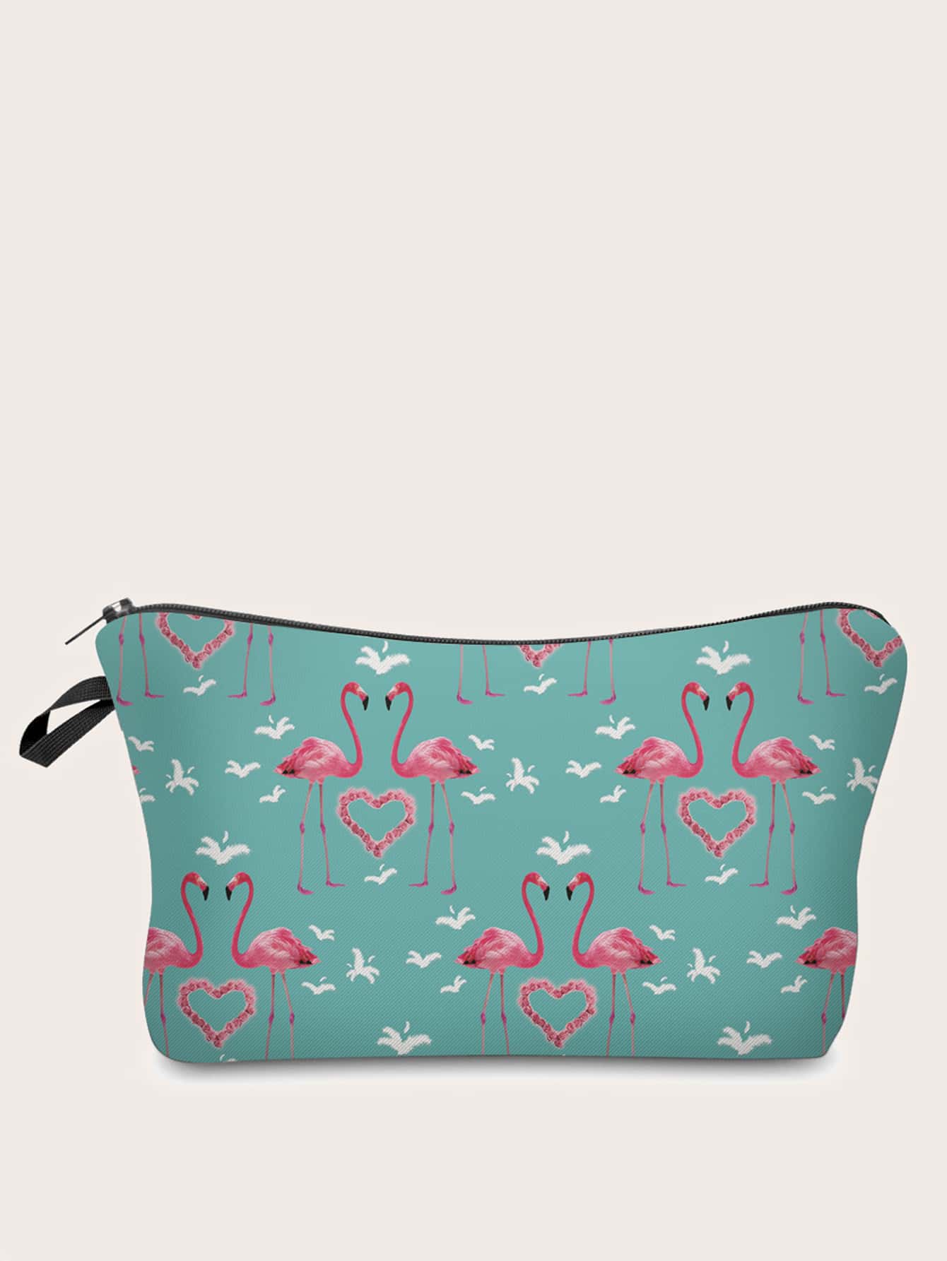 Trousse de maquillage avec imprimé cœur et flamant