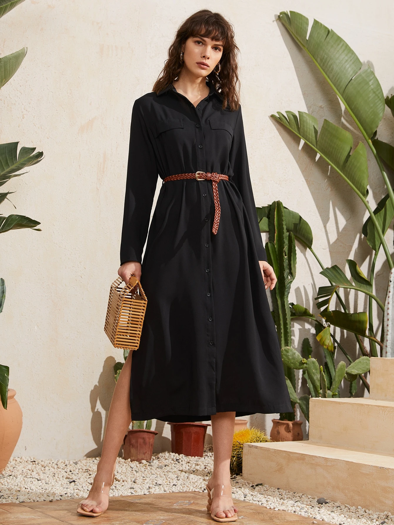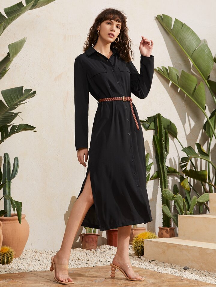 Robe chemise fendue sans ceinture