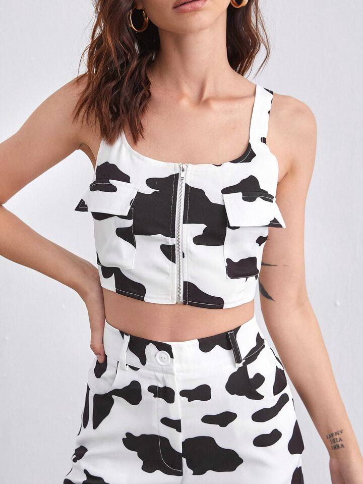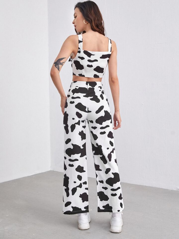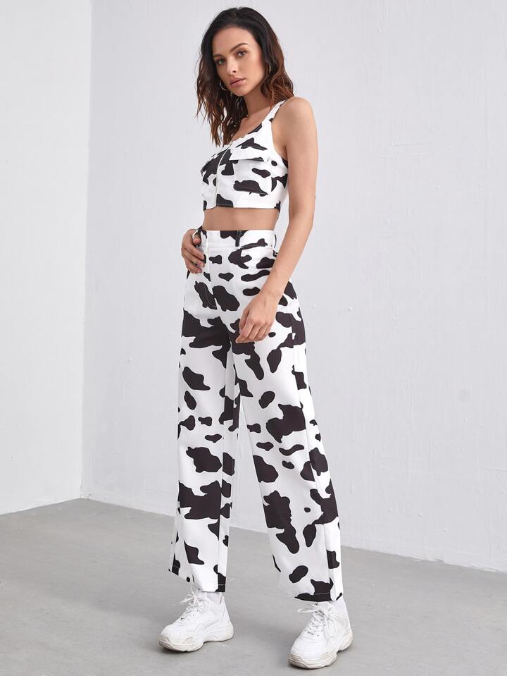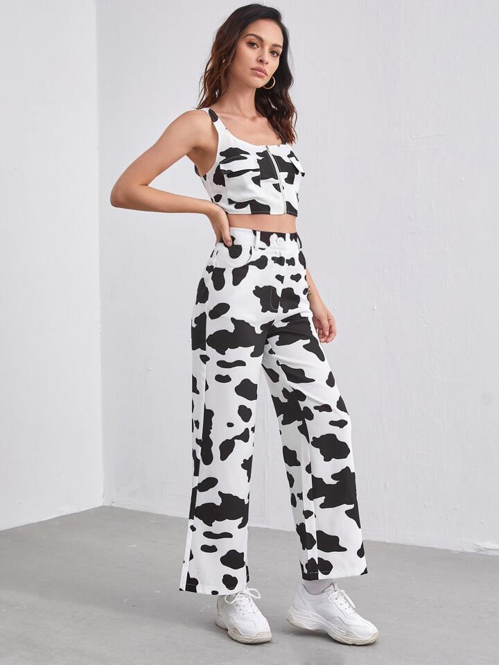 Ensemble pantalon et top à imprimé vache avec poche