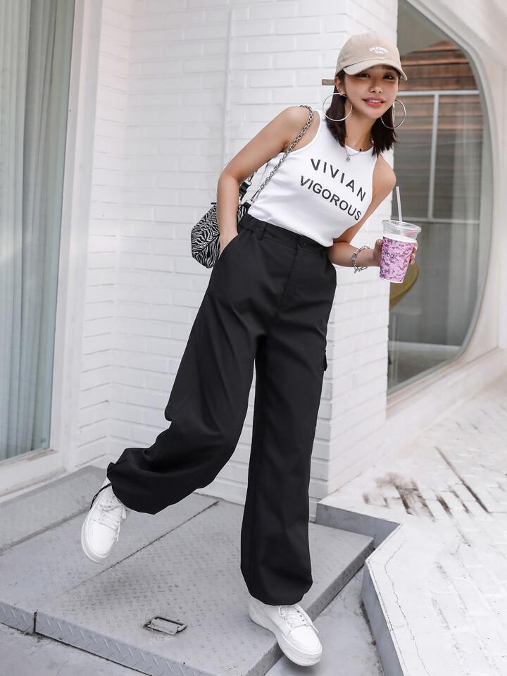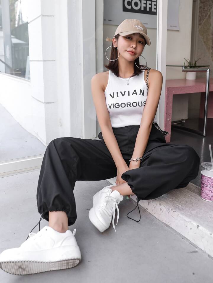 Pantalon cargo avec poches rabattables et cordon de serrage à la taille, automne