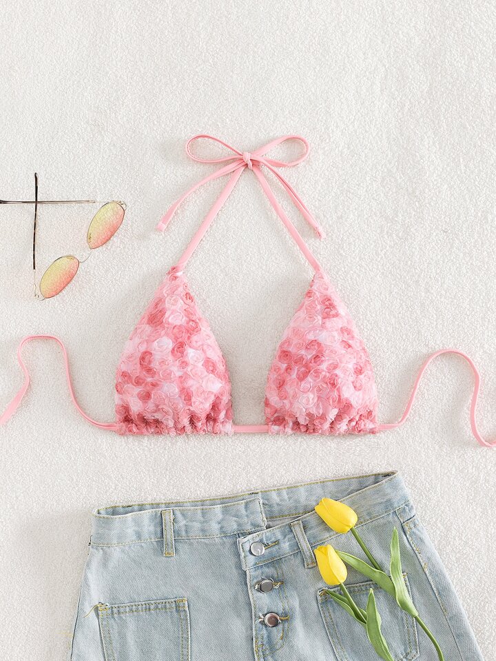 Haut De Bikini À Applique Fleurie Ras-Du-Cou