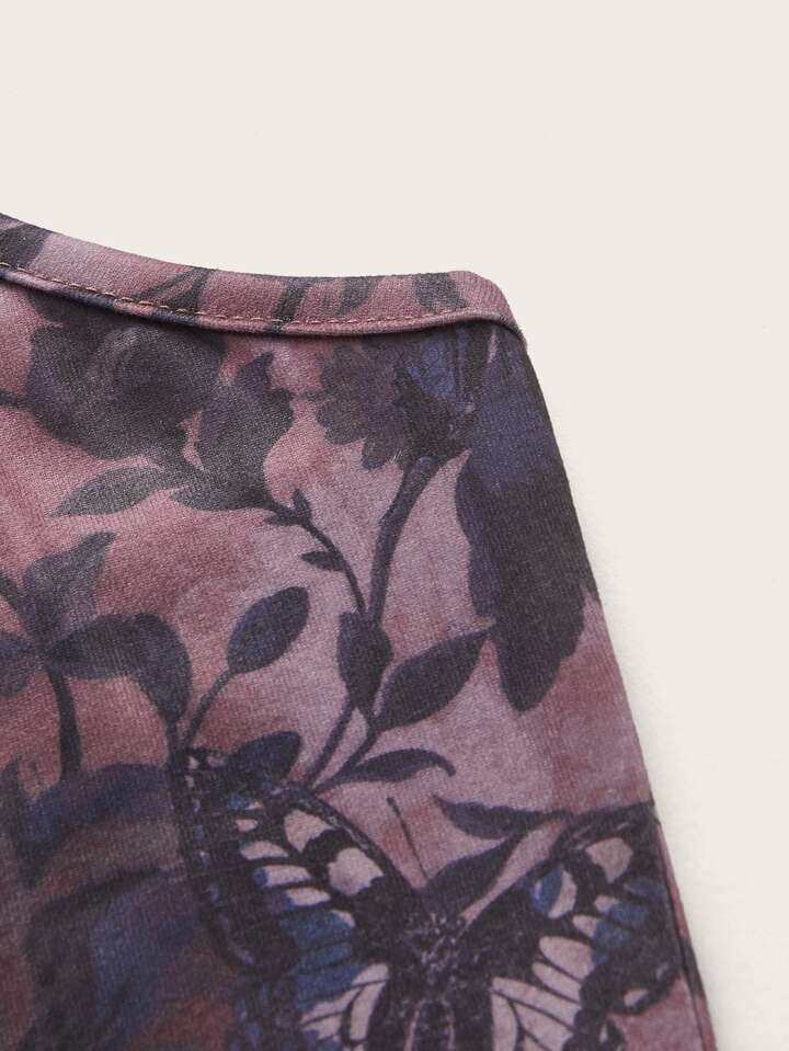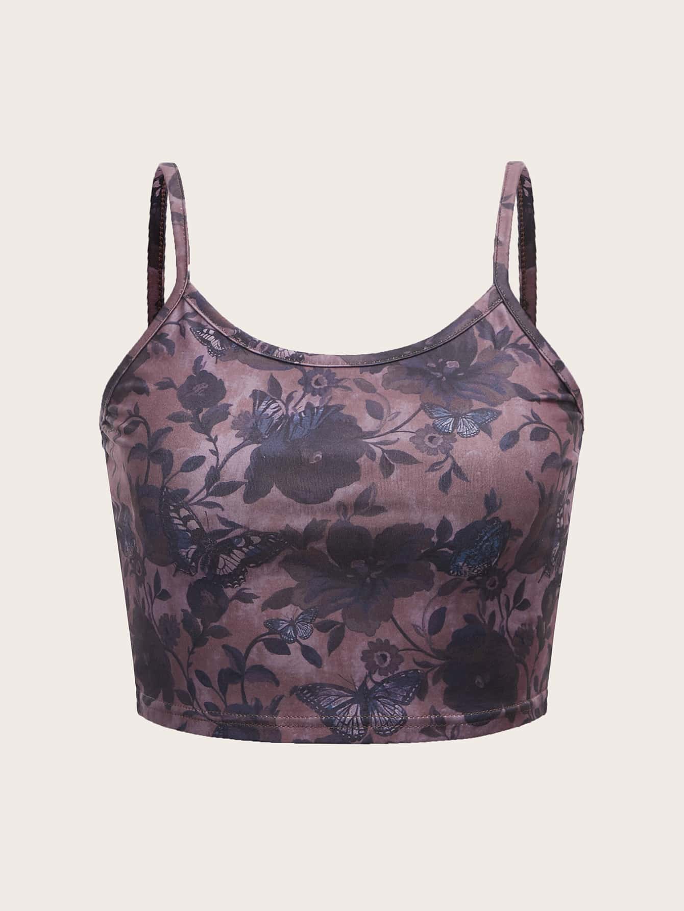 Top à fines brides à imprimé floral et papillon