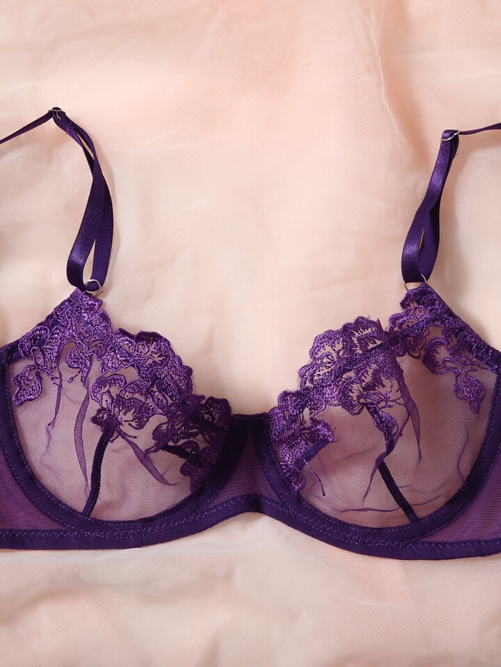 Ensemble de lingerie avec soutien-gorge sous-fil et culotte en maille brodée floral