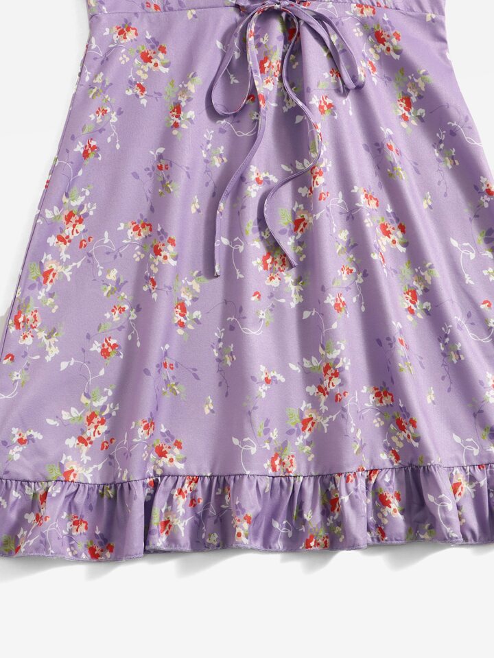 Robe à fines brides fleurie à lacets à volants