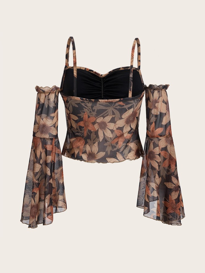 Top à imprimé floral à épaules dénudées