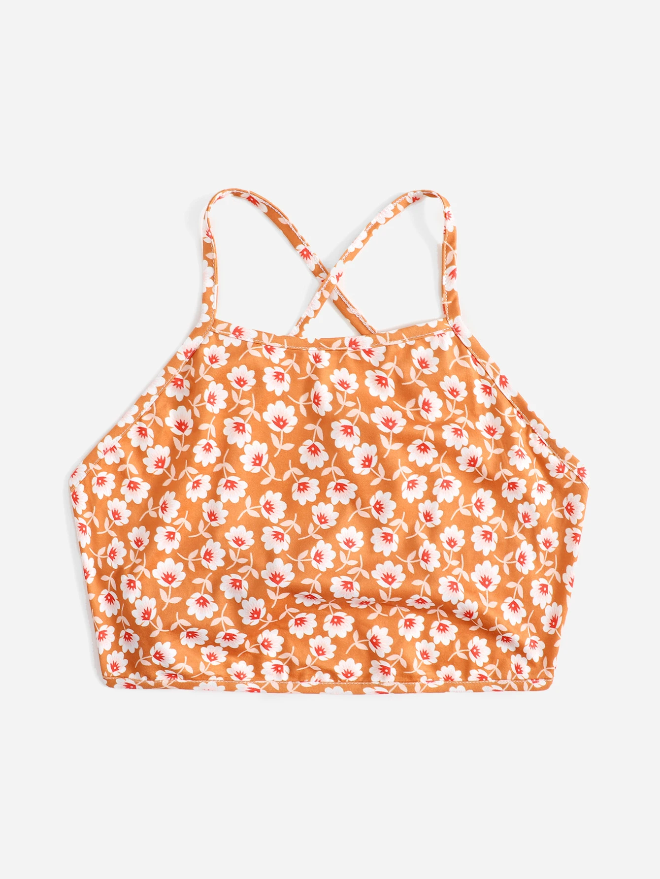Top à fines brides court à imprimé floral croisé