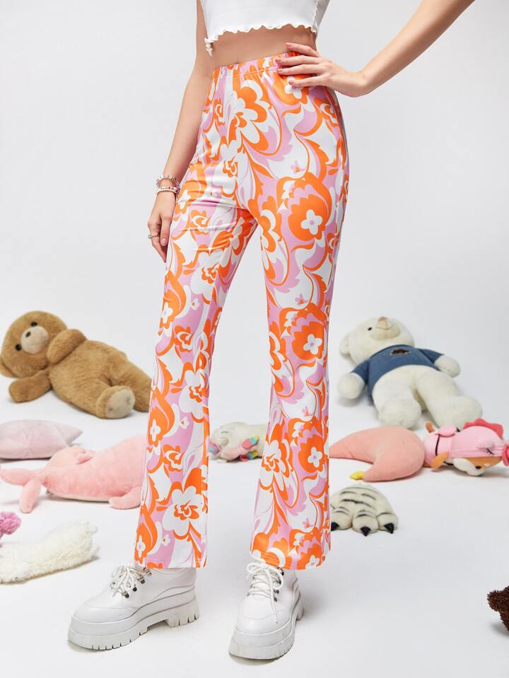 Pantalon évasé à imprimé floral