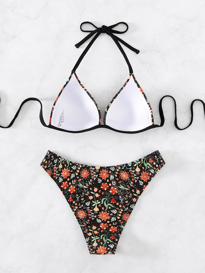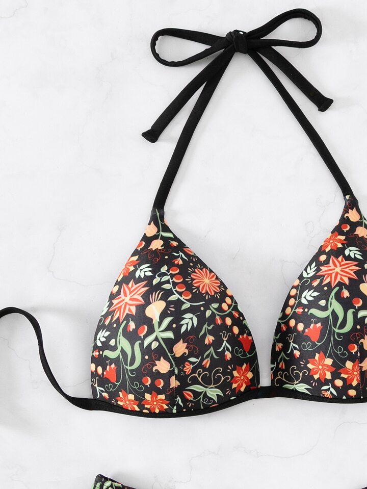 Ensemble de bikini d'été de plage à imprimé floral ras-du-cou push up