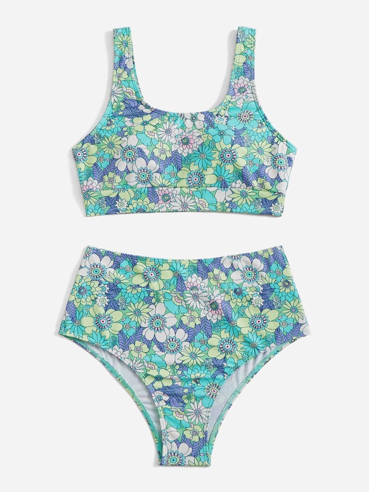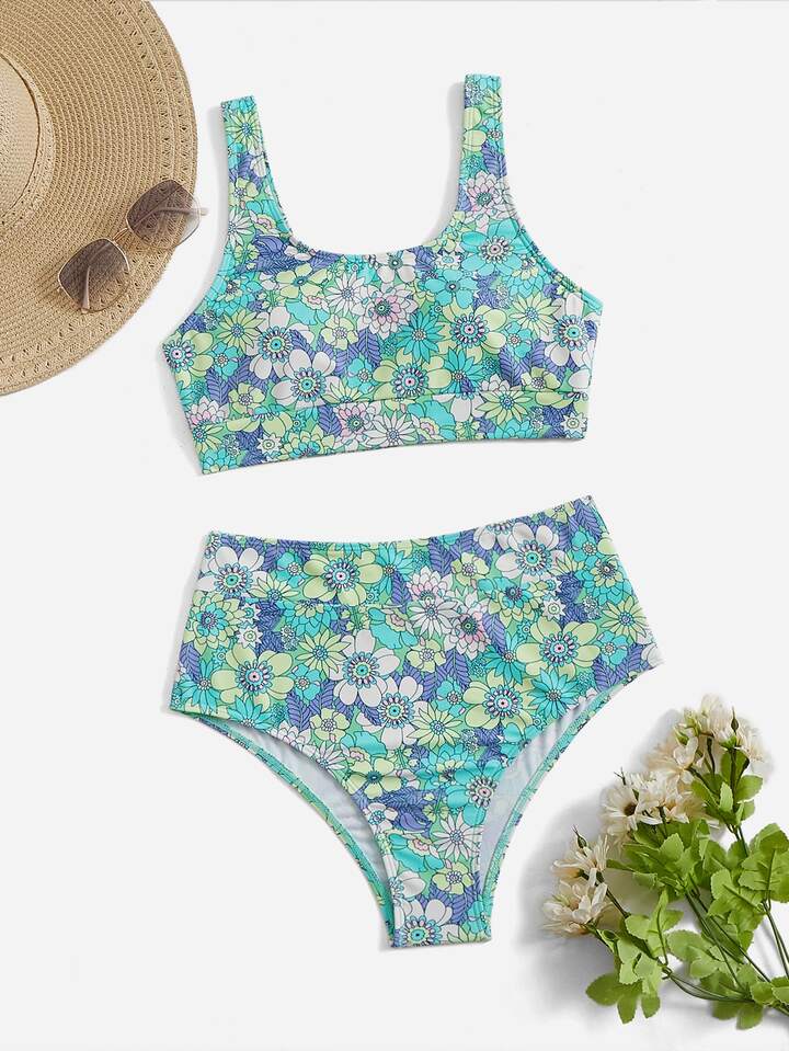 Ensemble de bikini à taille haute avec imprimé floral pour l'été et la plage