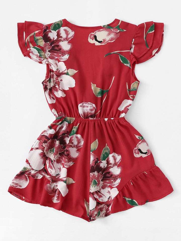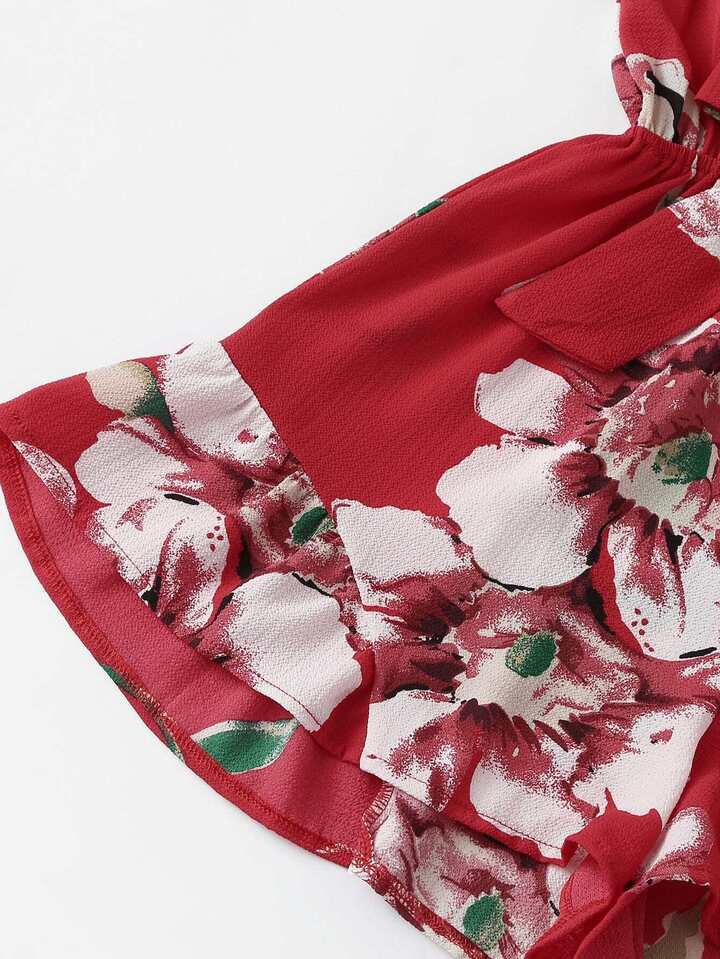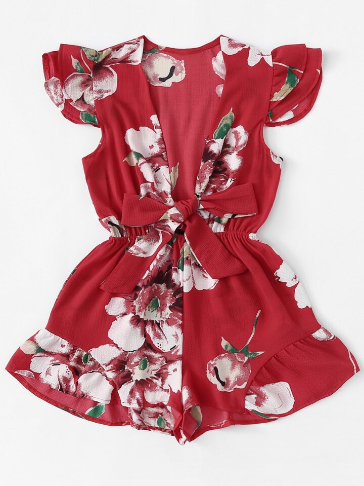 Combinaison imprimée fleur avec nœud devant