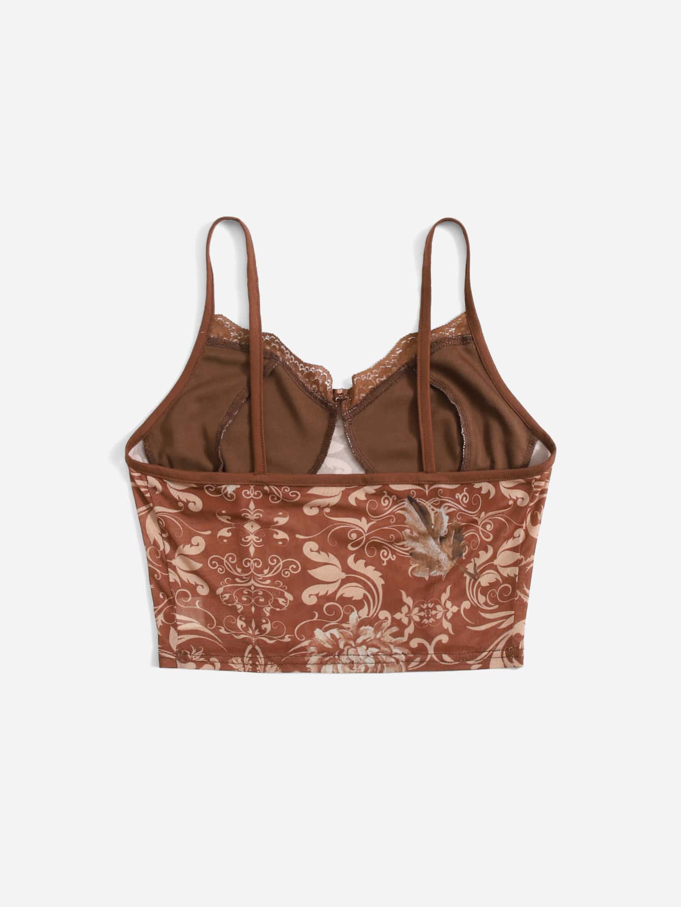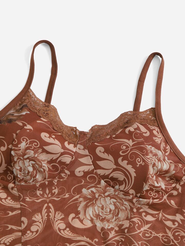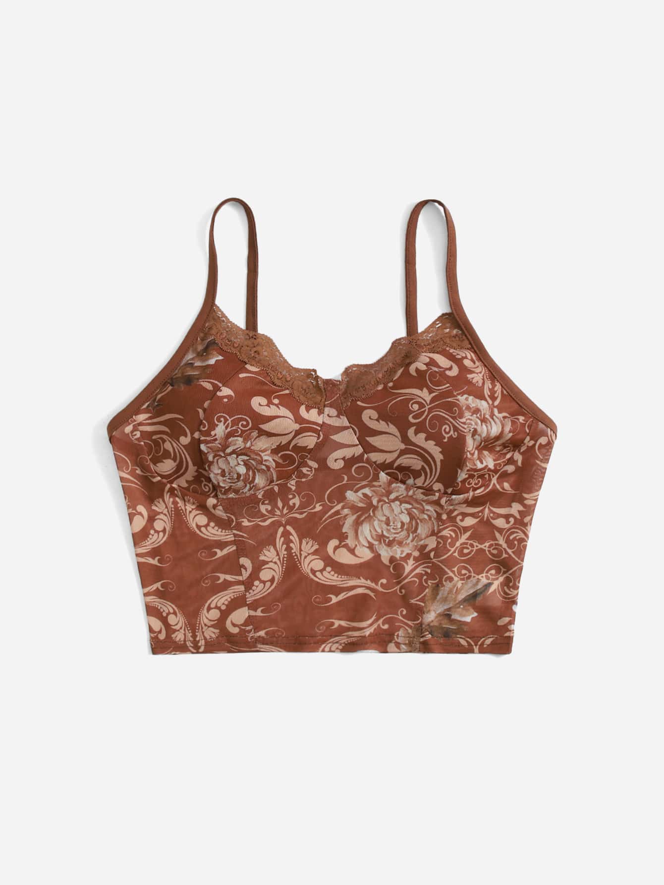 Top à fines brides court à imprimé floral ourlet en dentelle