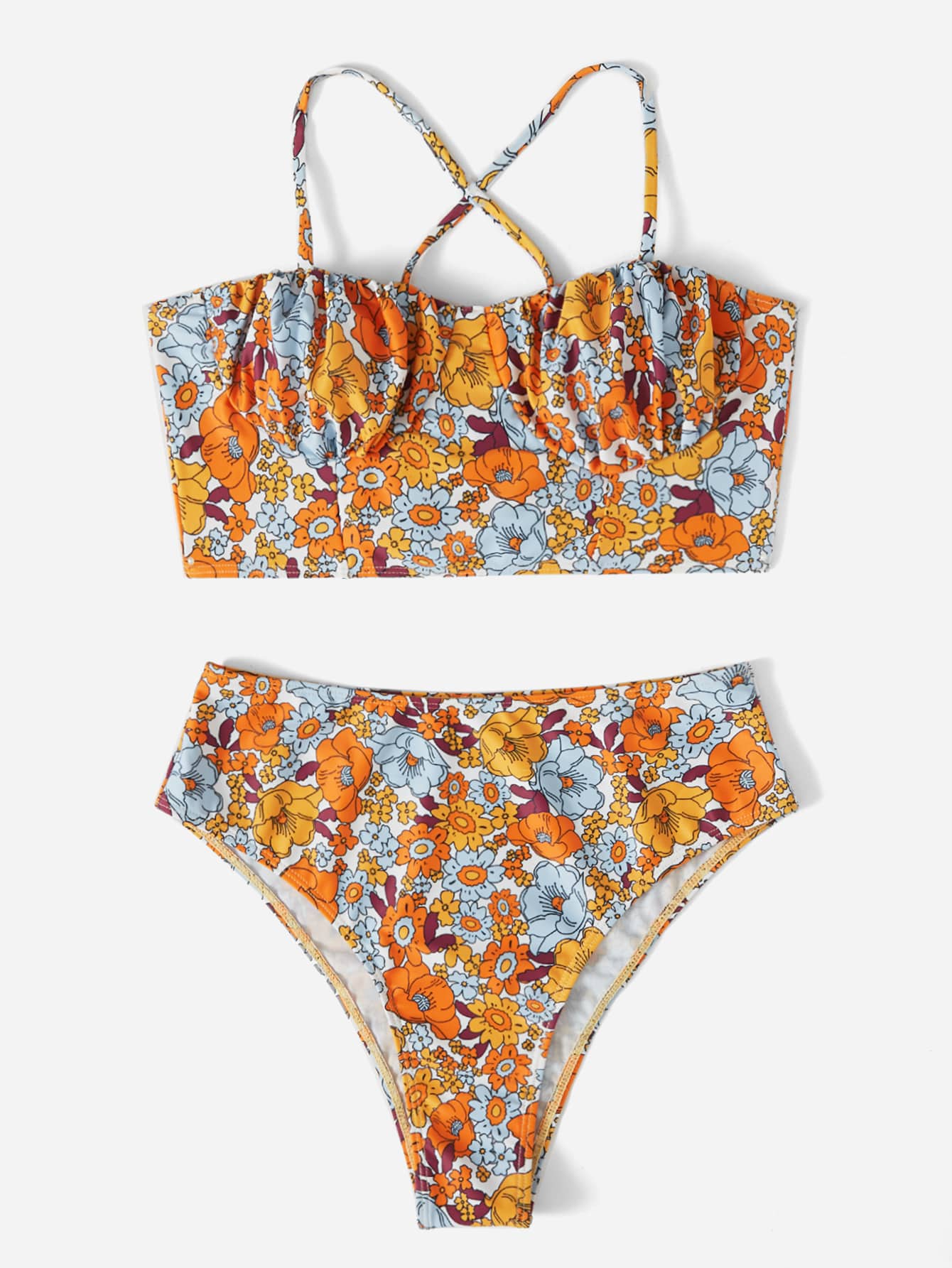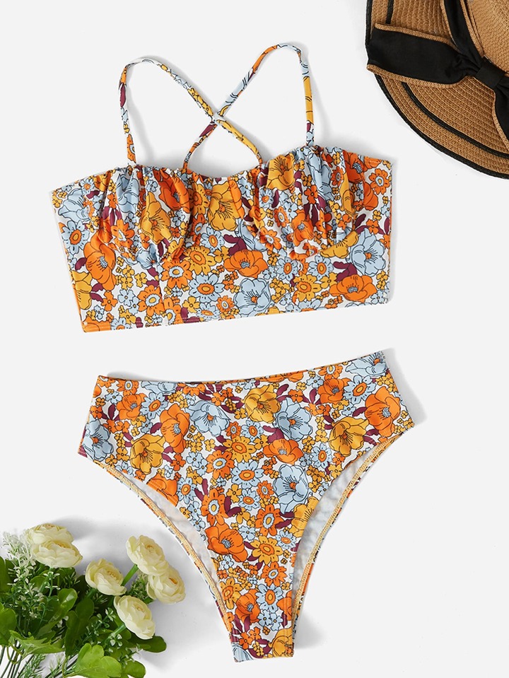 Bikini Taille Haute À Lacets Et Imprimé Floral
