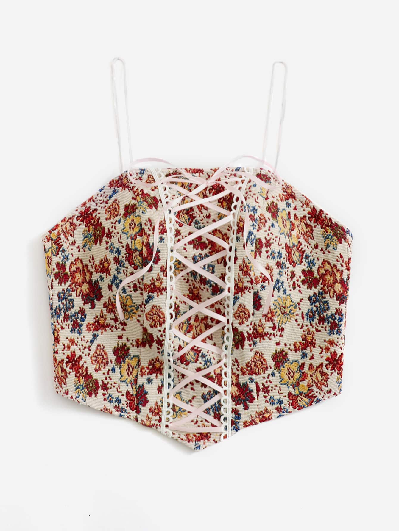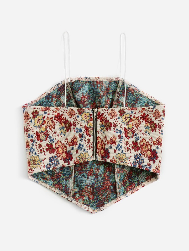 Top à fines brides à imprimé floral à lacets zippé