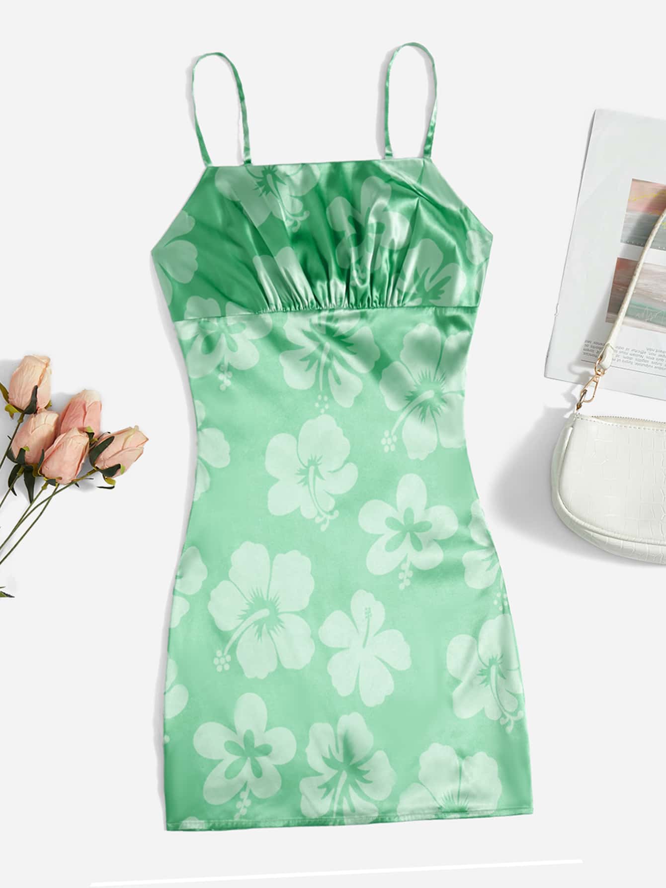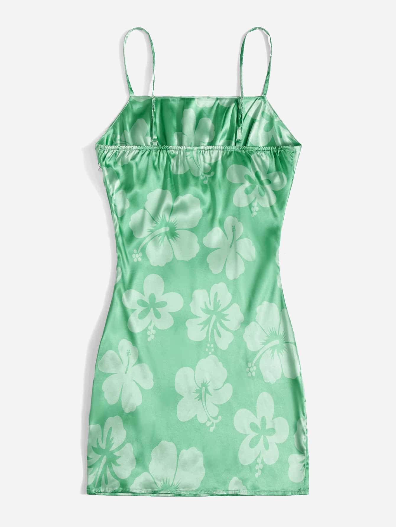 Robe à fines brides à imprimé floral à ruchés