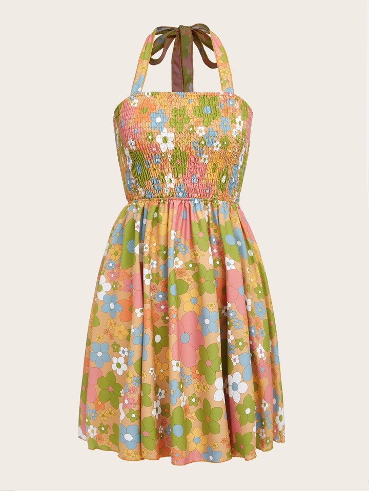 Top ras-du-cou à imprimé fleur froncé