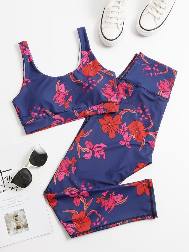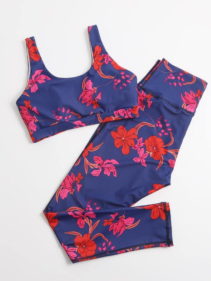 Ensemble brassière de sport fleuri & legging