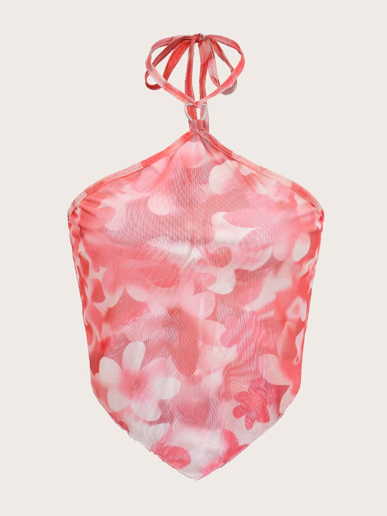 Top ras-du-cou à imprimé floral à nœud