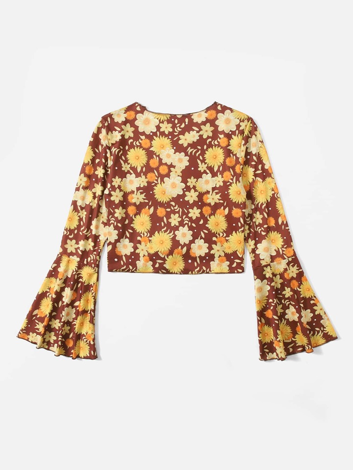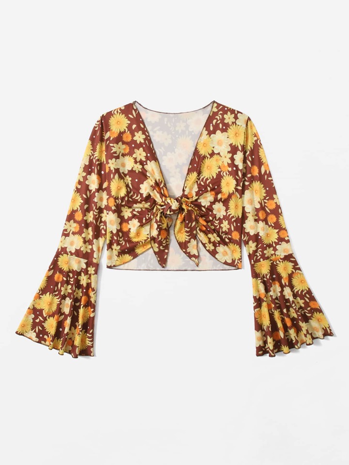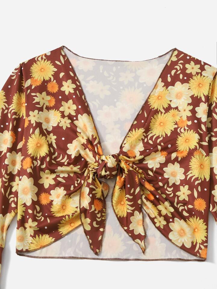 Blouse à imprimé floral à nœud