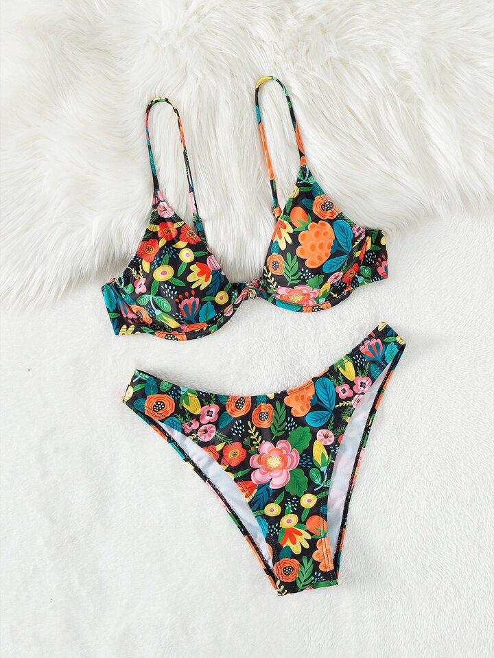 Ensemble bikini pour la plage d'été avec soutien-gorge à armatures et imprimé floral