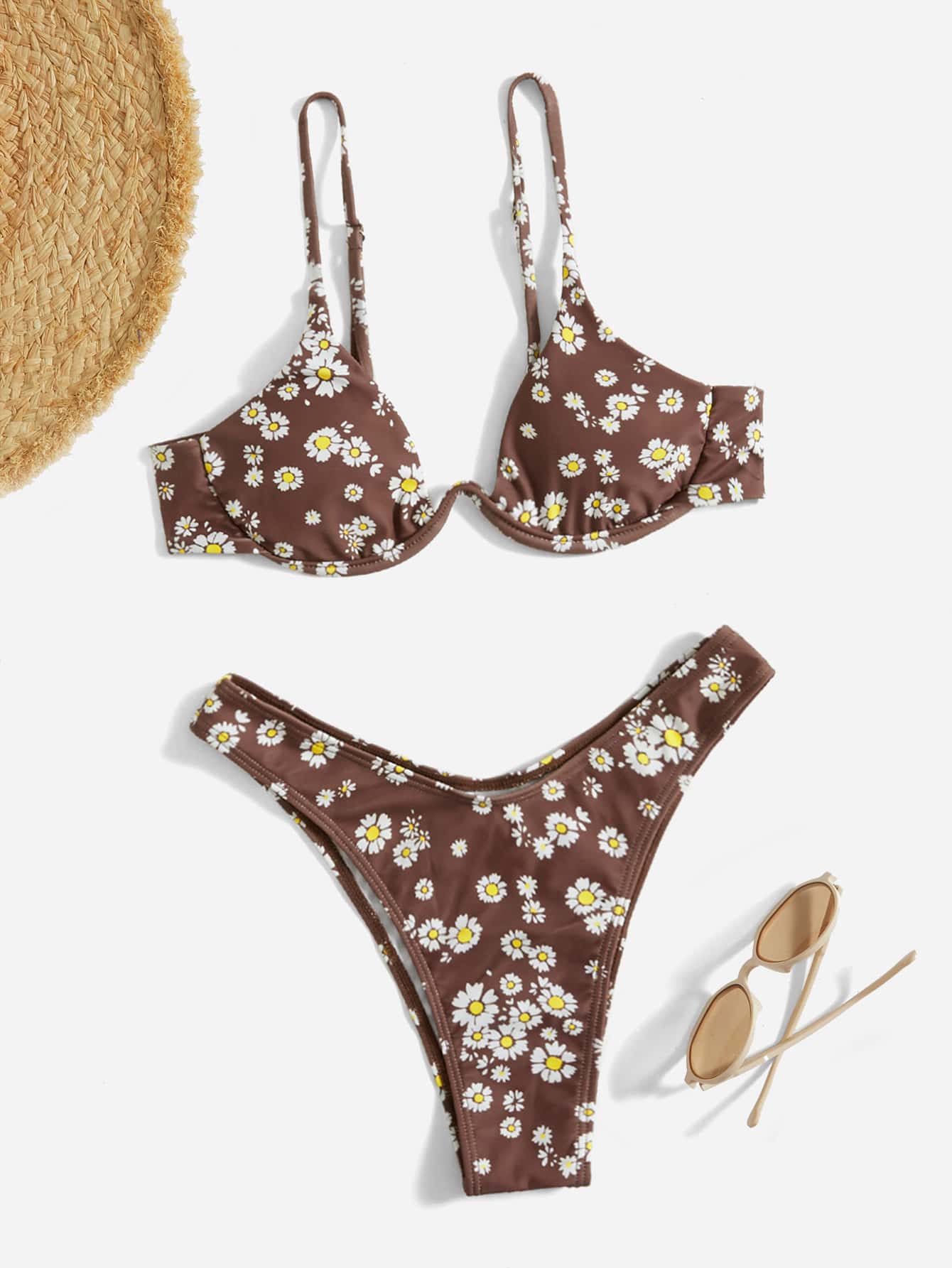 Bikini coupé haut avec imprimé floral et décolleté en V