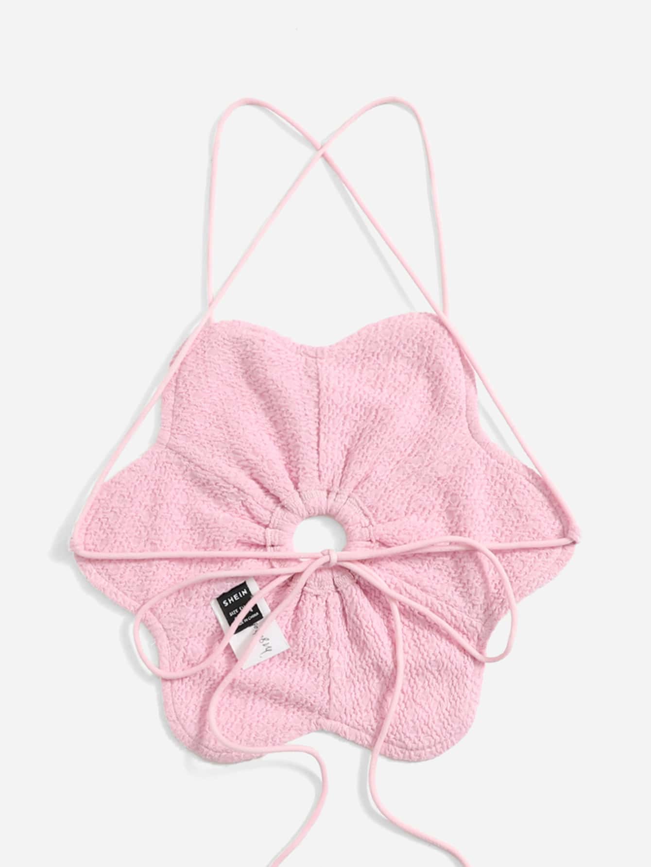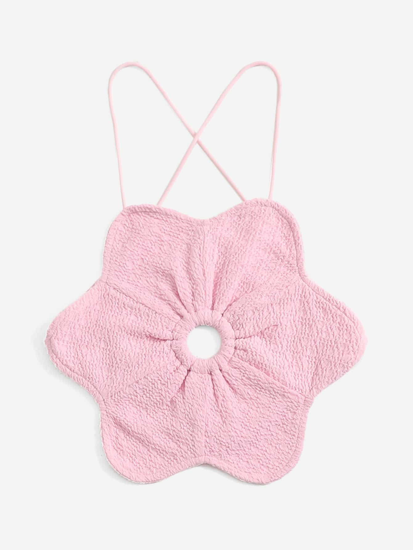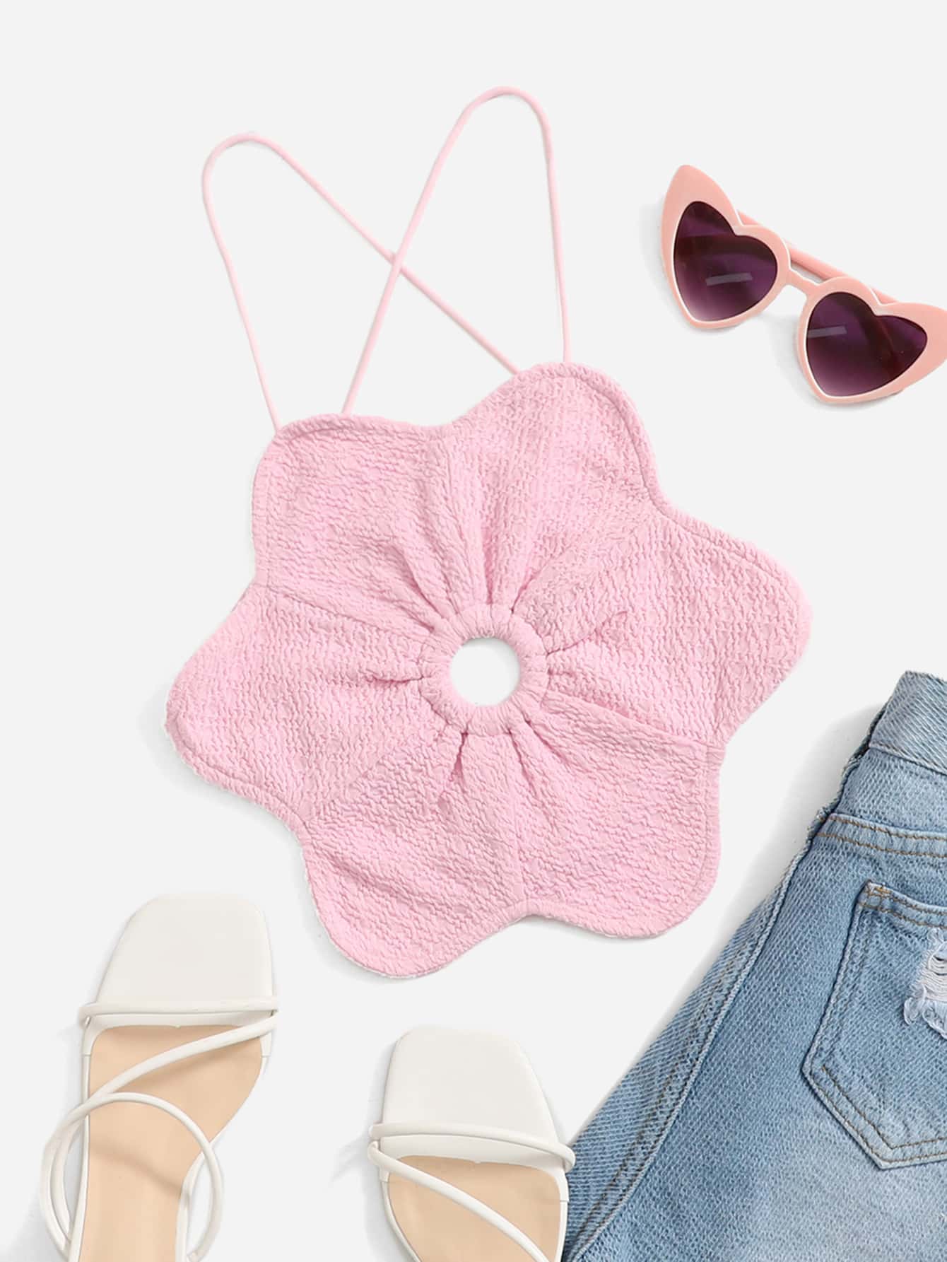 Top à fines brides en forme de fleur à anneau O dos-nu à lacets