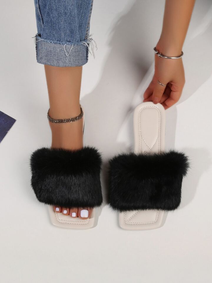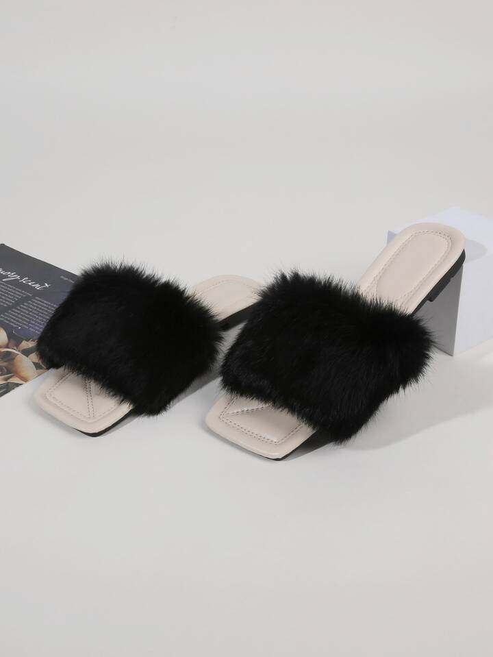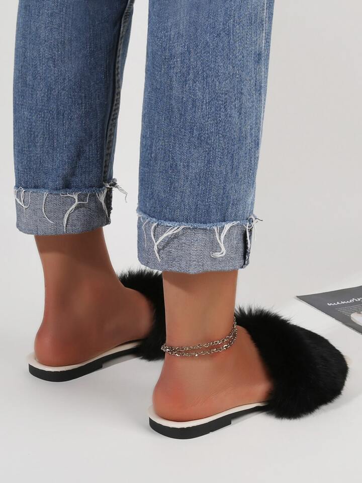 Sandales plates en tissu duveteux