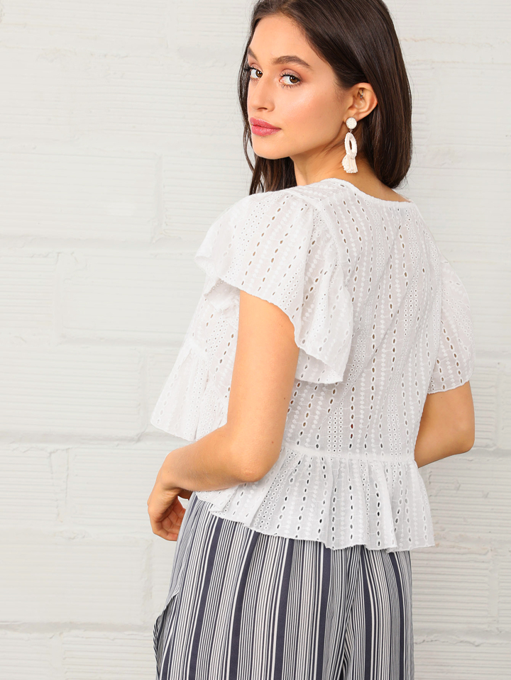 Top asymétrique avec manches papillon et broderie anglaise