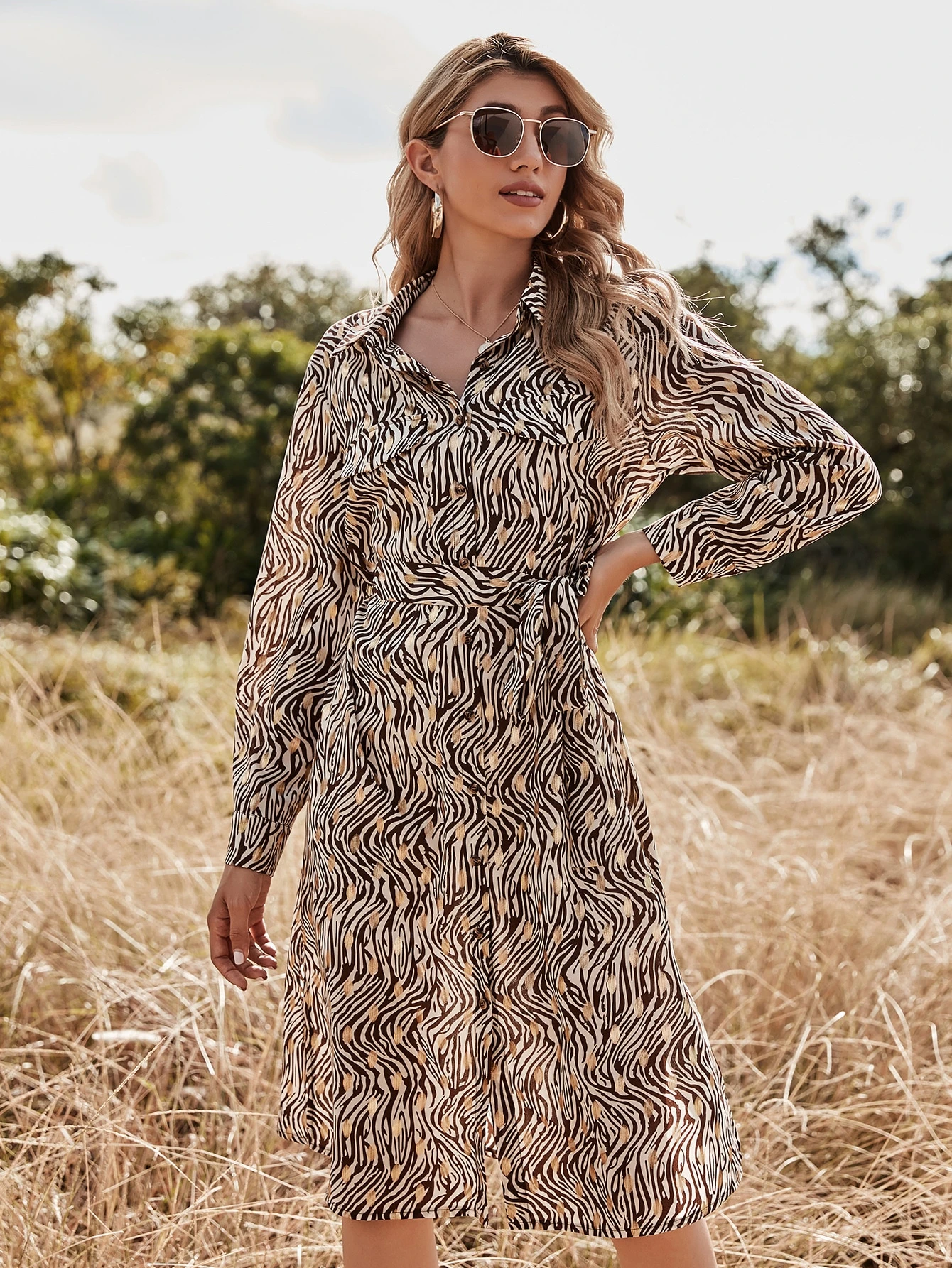 Robe chemise ceinturée rayée zébrée avec imprimé