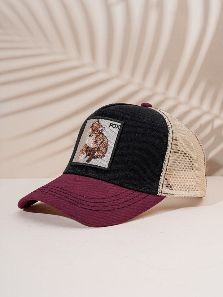 Casquette de base-ball renard patch à blocs de couleurs ajouré