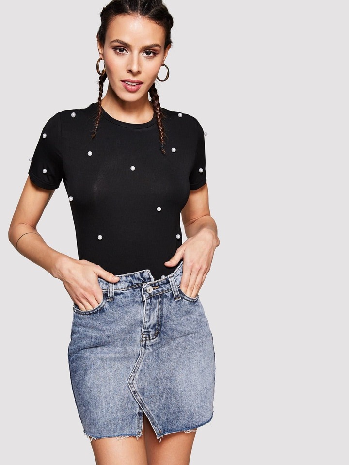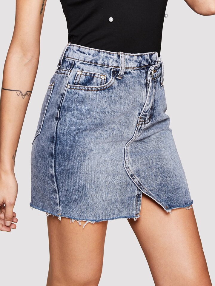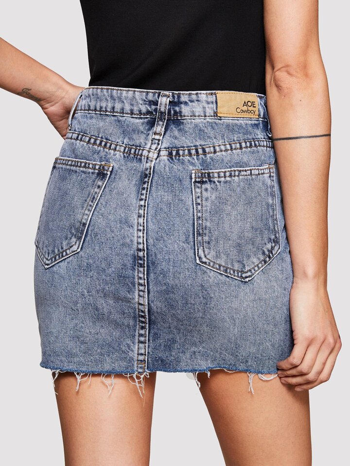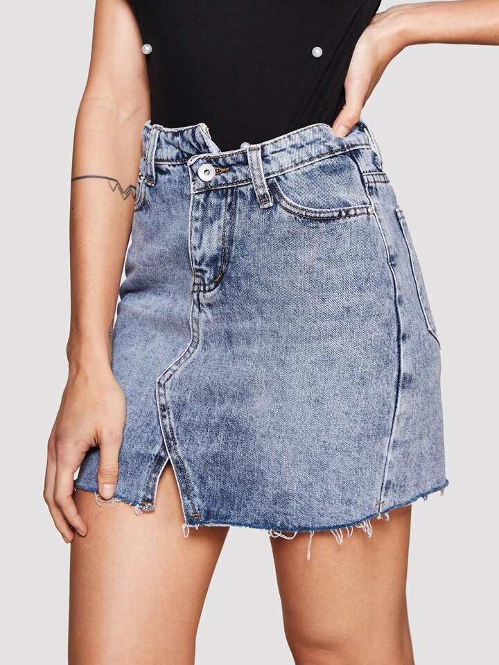 Jupe asymétrique en jean au bord déchiré