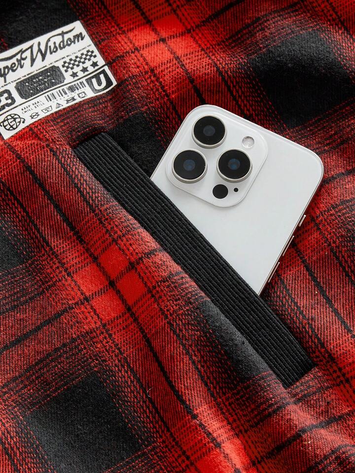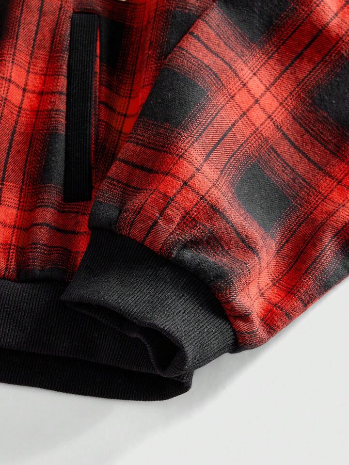 Friday the 13th X ROMWE Veste tricotée thermique à capuche avec motif à carreaux et lettres, style décontracté pour l'automne