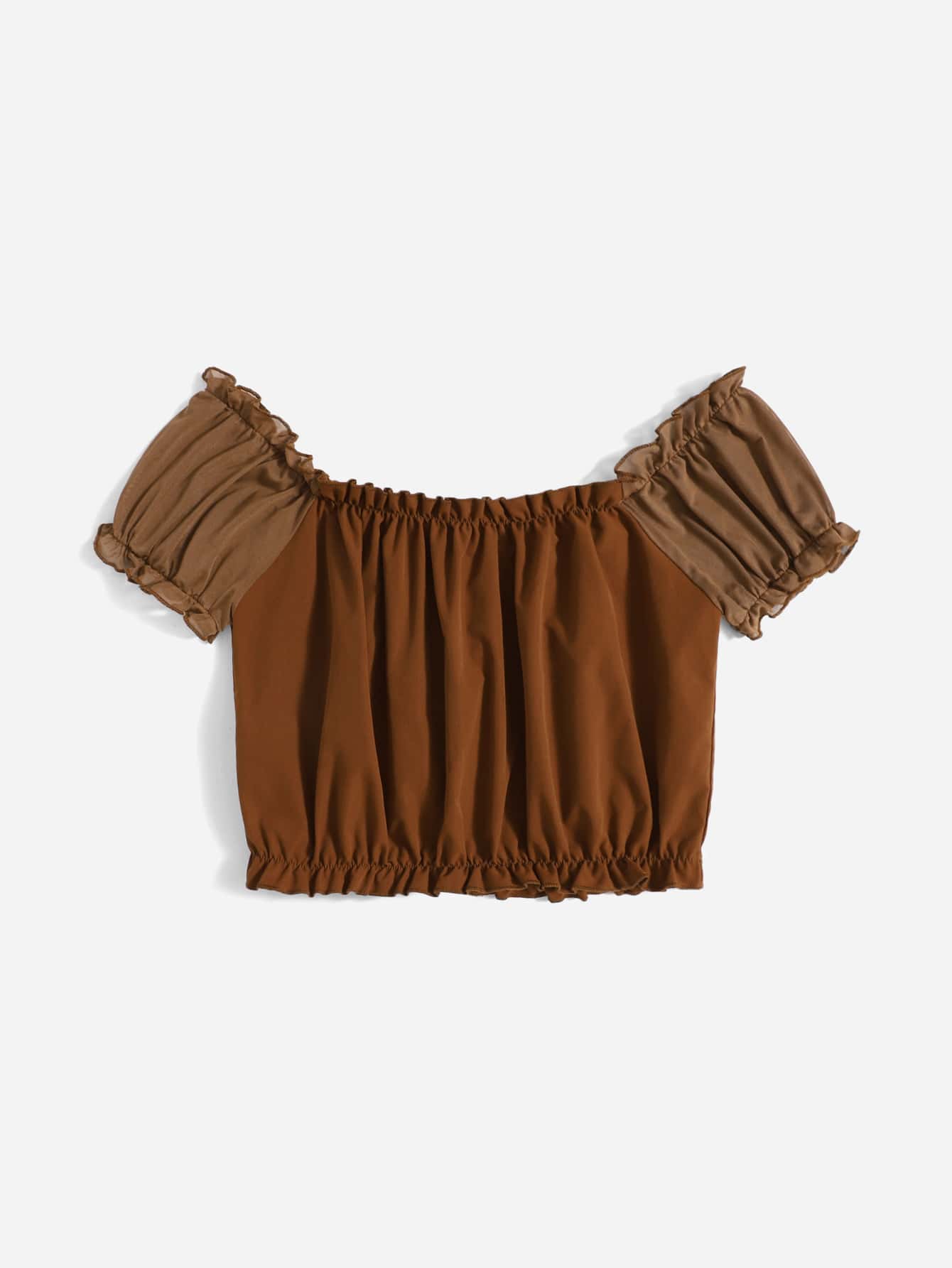 Blouse courte à fronces manches bouffantes