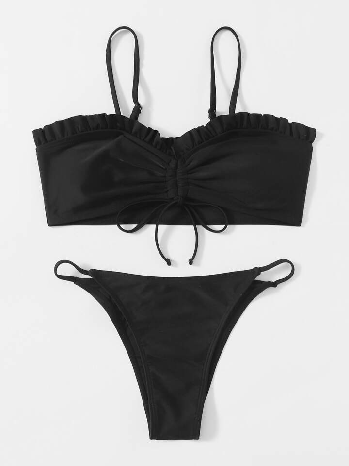 Ensemble bikini avec cordon de serrage et garniture à volants