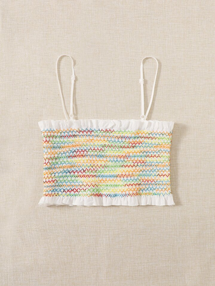 Top à fines brides en jacquard avec plis
