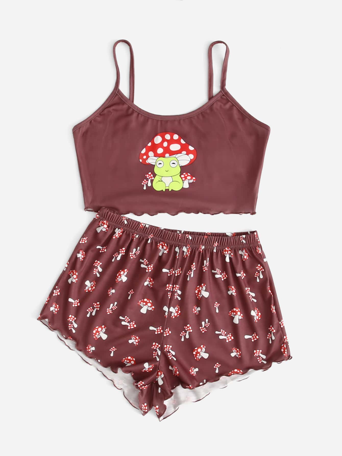 Ensemble de pyjama à imprimé champignon et grenouille à ourlet ondulé