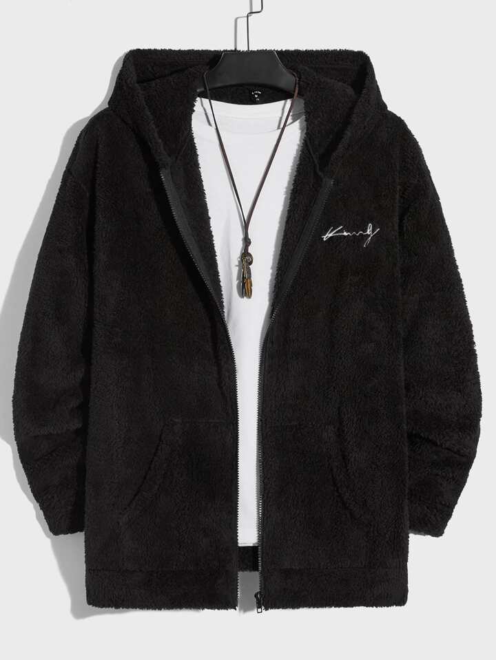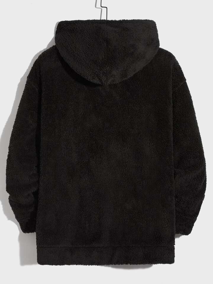 GENTILAND Sweat À Capuche En Teddy Ample Pour Homme Avec Broderie De Lettre, Épaule Basse Et Fermeture Éclair, Sans T-shirt À L'intérieur