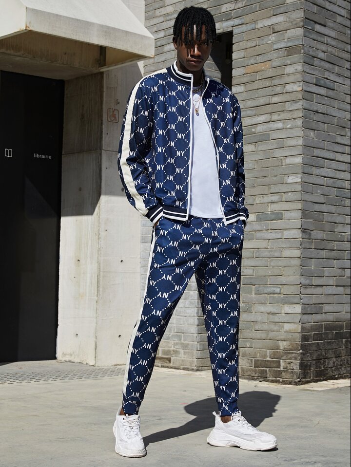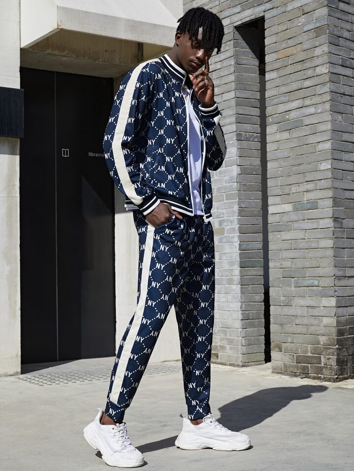 GENTILAND Homme Top à imprimé lettre zippé & Pantalon