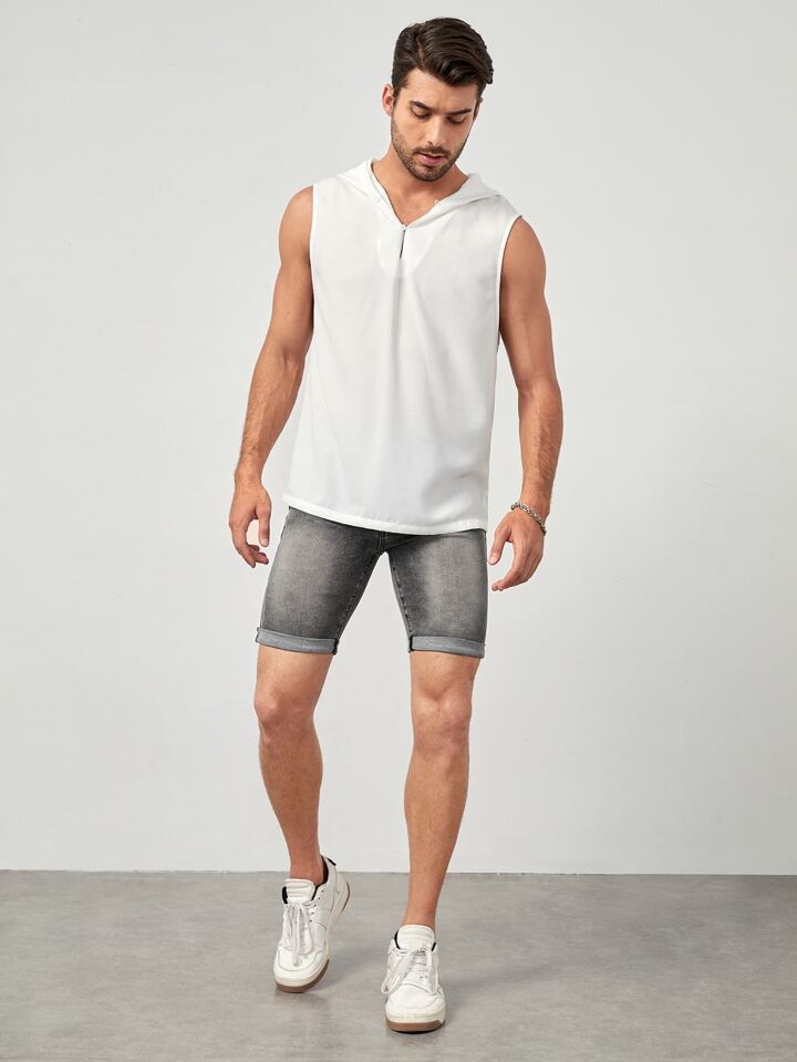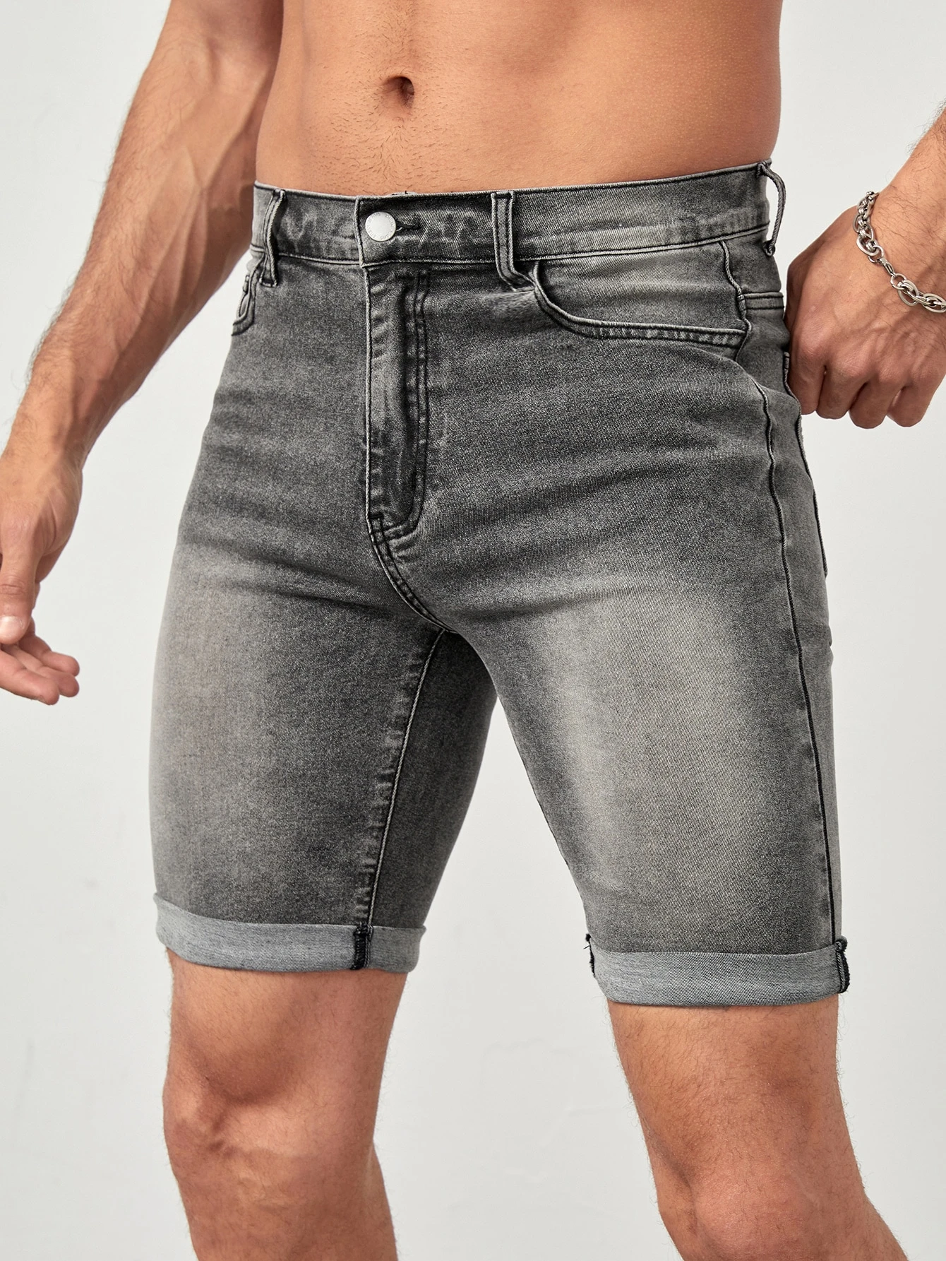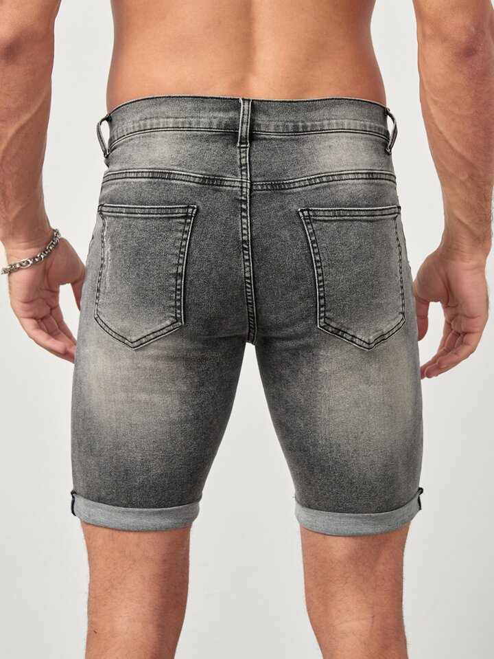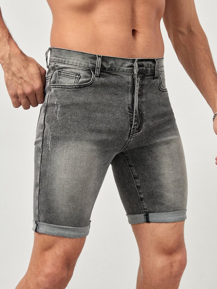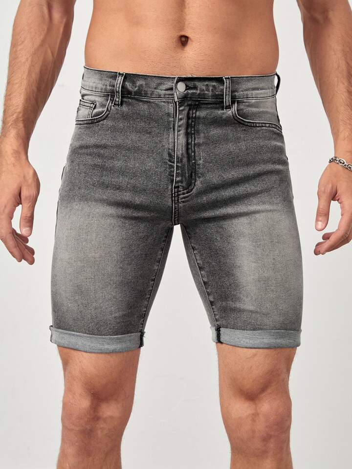 GENTILAND Homme Short en jean à ourlet roulé délavé