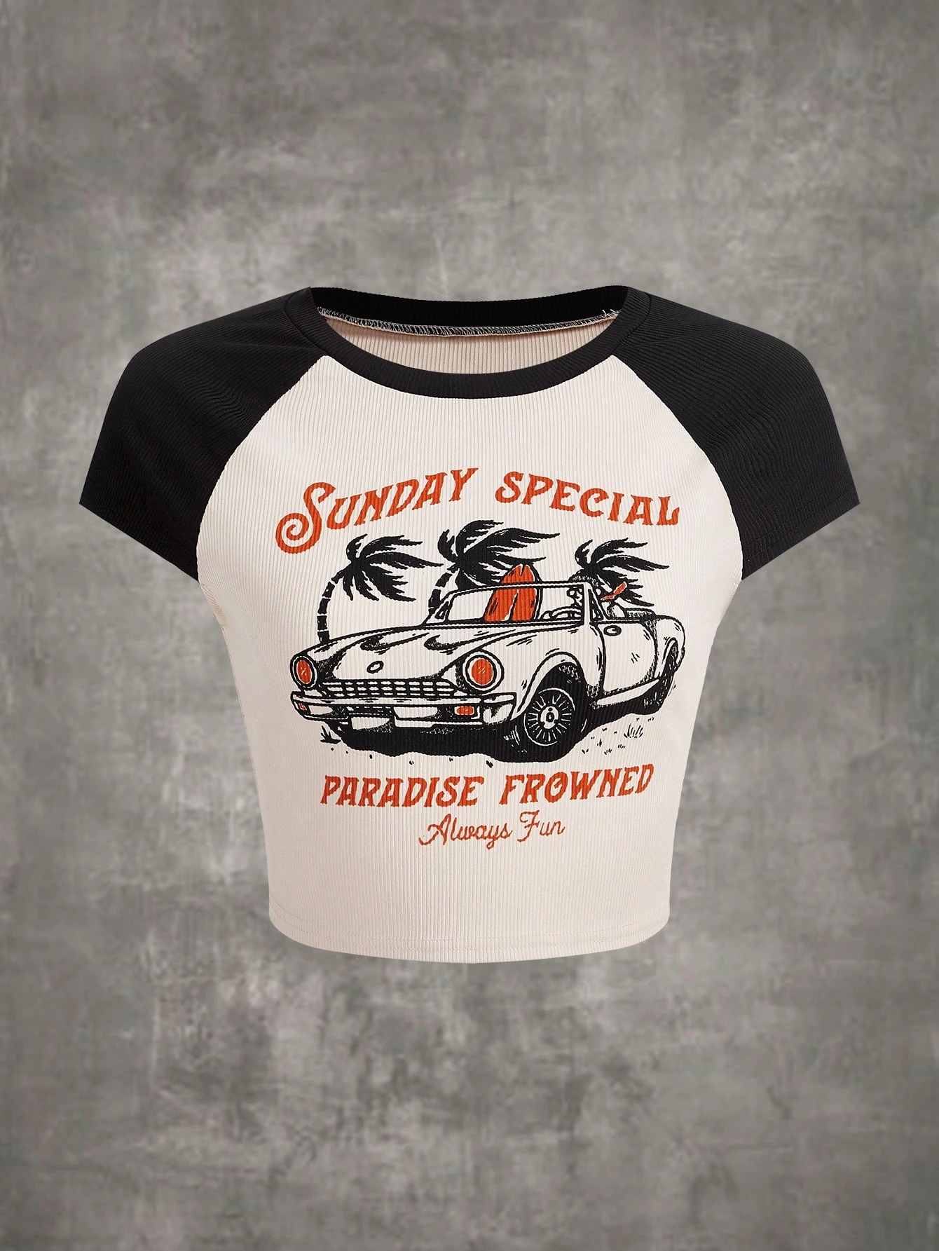 GOLDENLINE T-shirt Voiture Et Lettre Manches Raglan