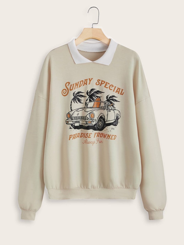 GOLDENLINE Sweat-shirt lettre voiture à col contrastant