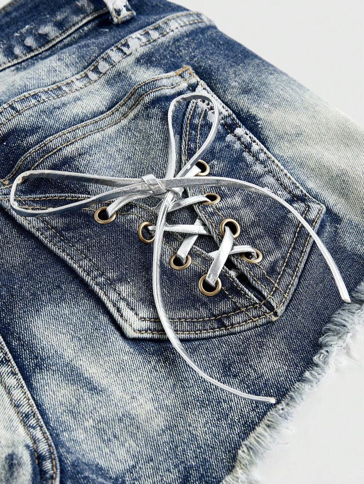 Short mini à taille coulissante en feuille d'argent vintage délavé, style Gal