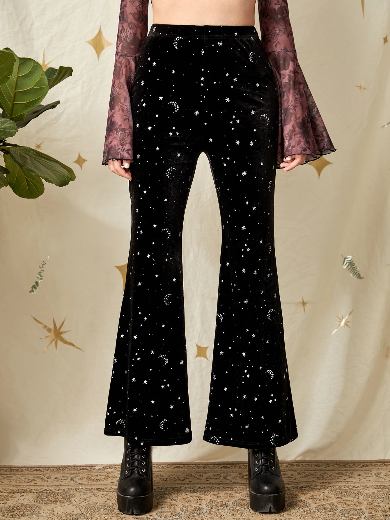 Pantalon évasé galaxie en velours