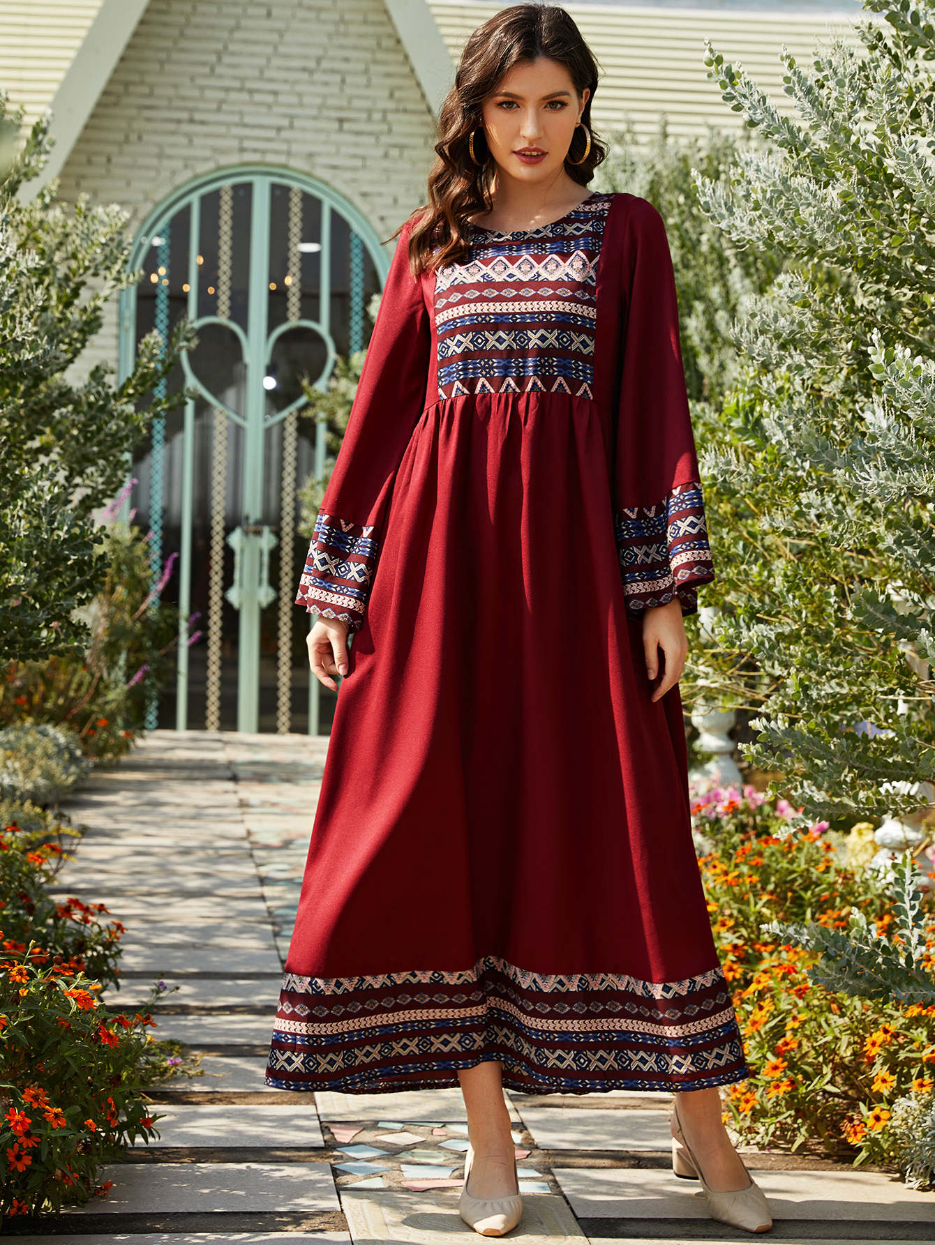 Robe arabe à imprimé géométrique col rond