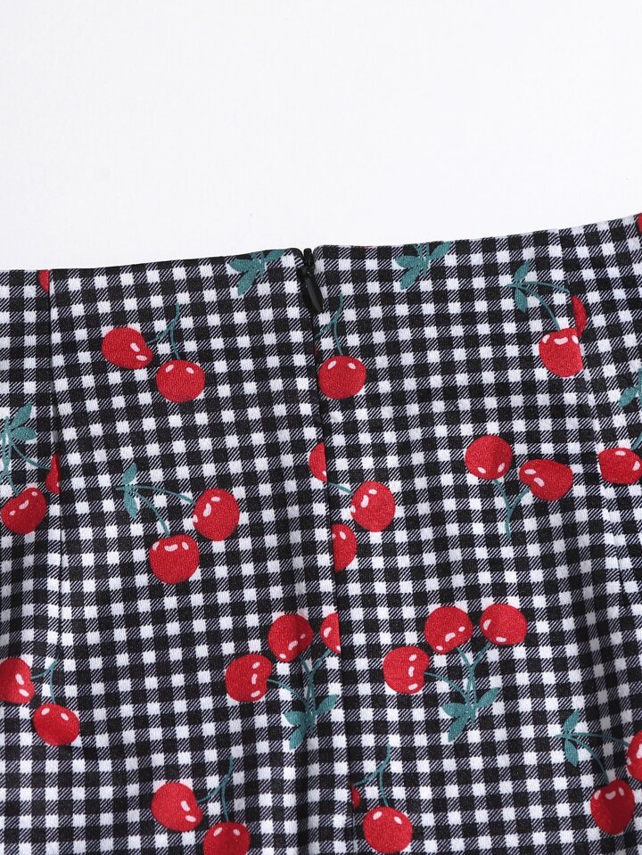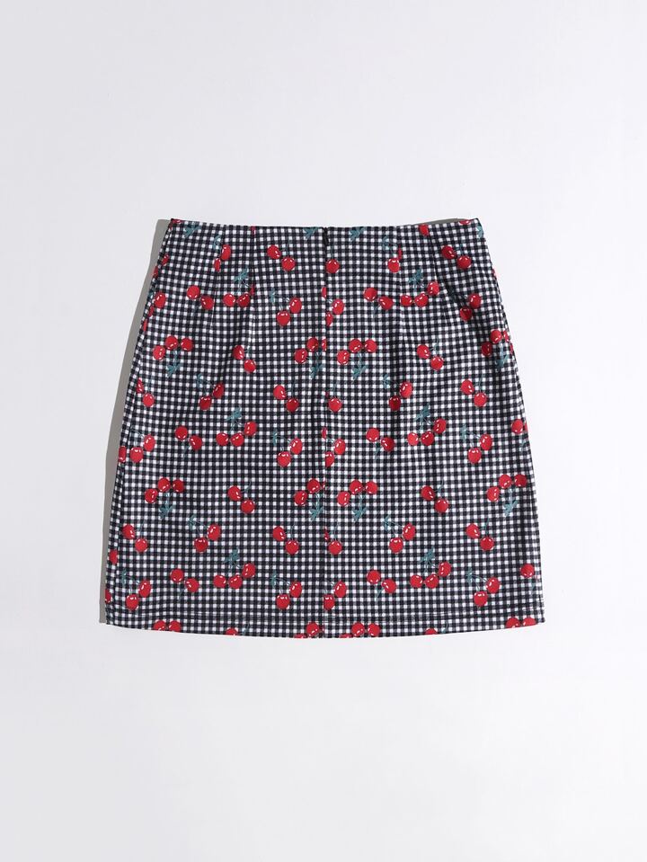Jupe à imprimé cerise à carreaux